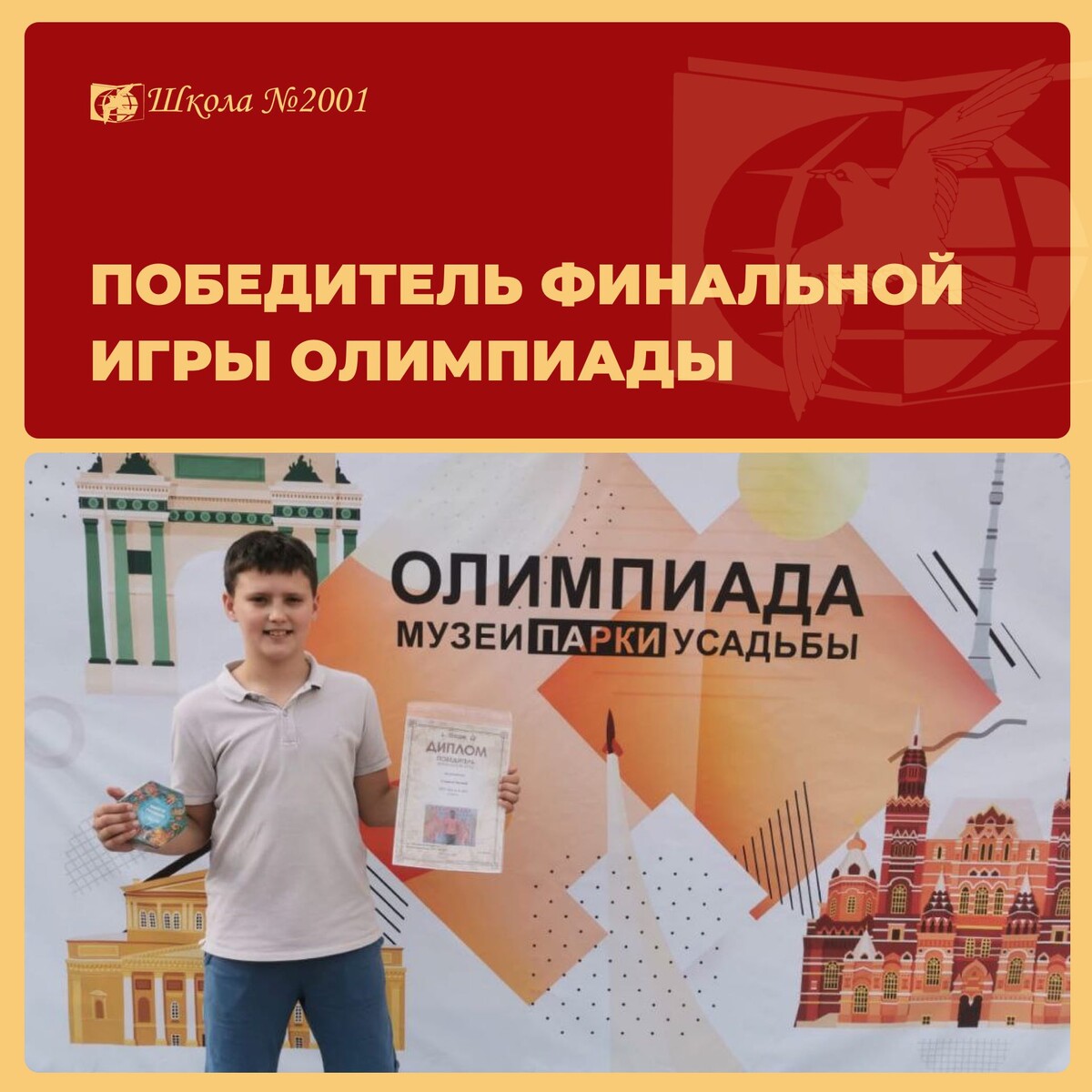 Поздравляем ученика 4 «Р» класса с ярким завершением сезона Олимпиады «Музеи.Парки.Усадьбы