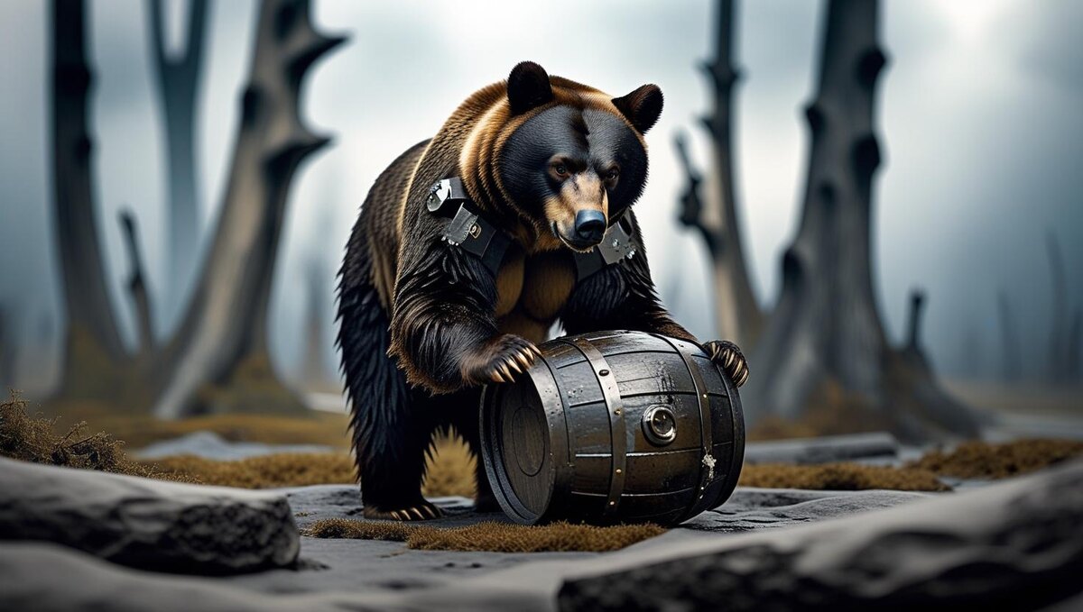 В лесной глуши, где воздух пропитан запахом гниющей листвы и стоячей воды, медведь Дубравыч замер с бочкой в могучих лапах. Его сердце колотилось как тяжелый кузнечный молот. Зловещее жужжание шершней приближалось с каждой секундой, нарастая, как предвестник неотвратимой беды.