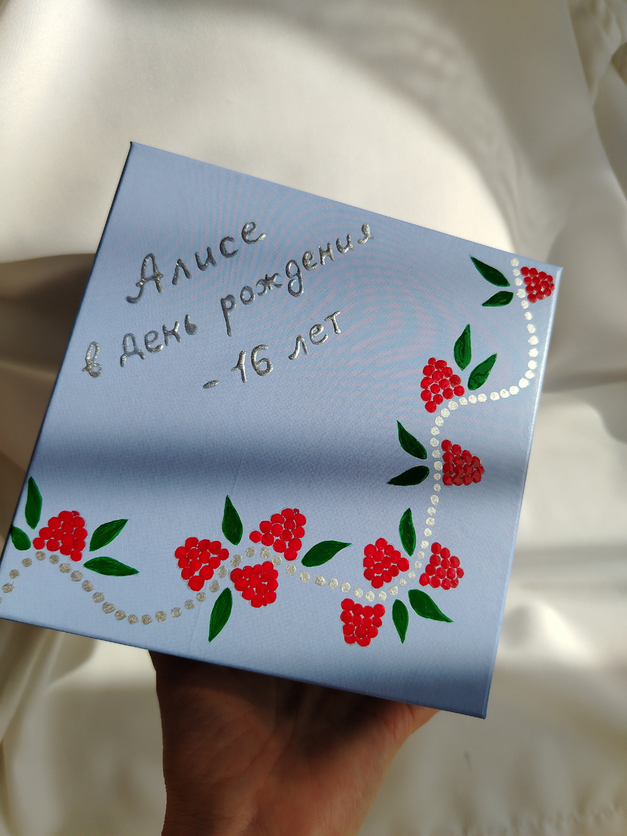 Кто со мной давно, знает, что я иногда расписывала упаковку, прежде чем отправлять заказ с украшением. Иногда получалось лучше, иногда хуже, я все равно продолжала это делать просто потому что мне это нравилось. И я чисто теоретически понимала, что однажды мне могут сделать заказ на роспись. Но мне казалось это настолько невероятным, что всерьез я об этом не думала. И вот на прошлой неделе я получаю заказ на украшения для девочки 16-лет, родственники хотя, чтобы все было празднично, красиво, индивидуально, необычно. И просят меня сделать надпись на упаковке "Алисе в День рождения - 16 лет" и рисунок украшения на упаковке. Украшения - браслет и кулон с малиной, колье из аквамарина. Колье с аквамарином я не нарисую, я все же не художник. А малину вполне могу🙂 Ну и поделюсь, какая вообще красота получилась у меня с упаковкой. Все такое розово-голубое, девчачье, сама почувствовала себя 16-летней девочкой, пока упаковывала😁 Как вам?