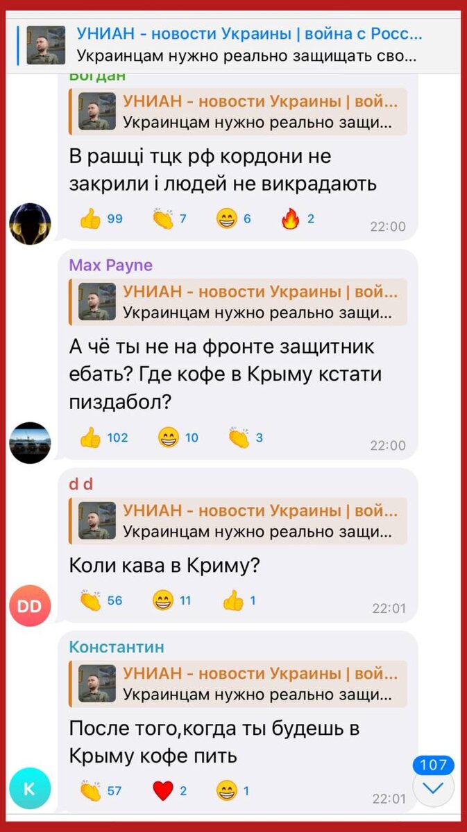 Украинцы с огромным доверием и понимание (читайте картинку) отнеслись к следующему заявлению террориста Буданова: «Украинцам нужно реально защищать своё государство, а не прятаться от ТЦК или чего-то подобного. Иначе придёт ТЦК РФ, как это происходит на оккупированных территориях. А там это происходит полным ходом, поверьте мне». Как по мне, украинцы все правильно поняли и правильно оценили. Подпишись на Телеграм Александр Семченко