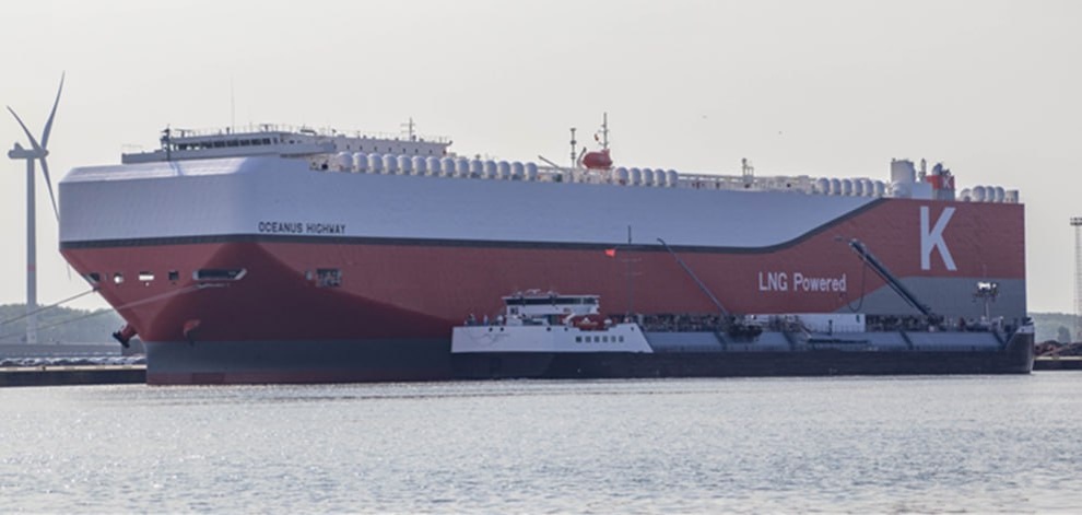 K Line впервые использует био-LNG на новом автомобилевозе: шаг к безуглеродному судоходству. Японская судоходная компания Kawasaki Kisen Kaisha (K Line) объявила о первом использовании био-LNG в рамках своей стратегии перехода к возобновляемым источникам топлива и достижения углеродной нейтральности к 2050 году. 1 июля 2025 года K Line официально подтвердила, что новый автомобилевоз "Oceanus Highway" был заправлен 500 тоннами био-LNG, поставленного Shell Western LNG, входящей в структуру энергетического концерна Royal Dutch Shell. Операция состоялась 16 июня в бельгийском порту Зебрюгге. Судно, построенное на верфи Shin Kurushima Toyohashi Shipbuilding, было передано K Line в феврале 2025 года и представляет собой автомобилевоз (тип PCTC), рассчитанный на 6 900 автомобилей (CEU), с валовой вместимостью 75 259 тонн, длиной 199,95 м и шириной 38 м. Био-LNG (сжиженный биометан, LBM) производится из возобновляемых органических отходов и сертифицирован по стандарту ISCC-EU, демонстрируя