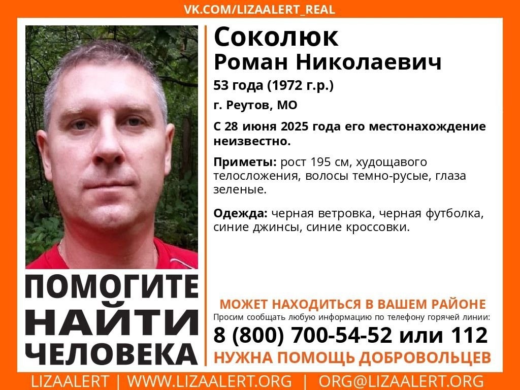 Пропал #Соколюк Роман Николаевич, 53 года, г. #Реутов, МО.