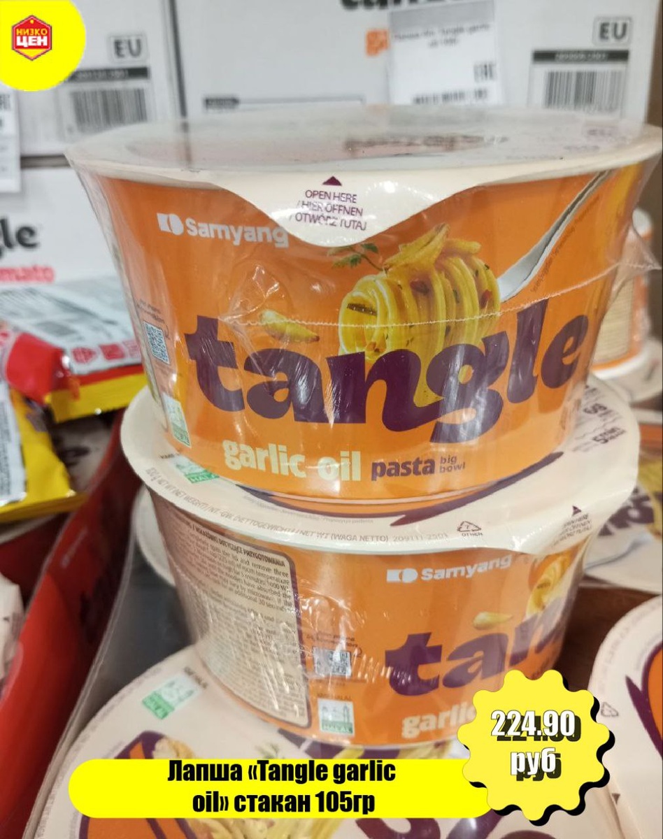 🍜 Чесночная лапша Tangle garlic oil. Ещё одна корейская лапша вдохновлённая Италией. Насыщенный вкус и аромат обжаренного чеснока.