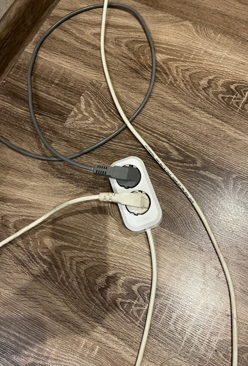 Как такое произошло, я не понимаю.. сын вызвал электрика, ну а я протянула удлинители, благо они у него были и эту проблему на время решили.