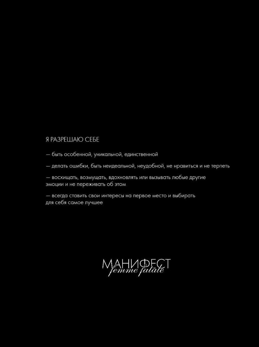 Доверять своим чувствам и желаниям, прислушиваться к интуиции, следовать за искренними мечтами, верить и свету, и тени, выбирать свою силу и внутренний огонь. Неожиданная и странная? Разная! Настоящая. Всегда! Мы создали манифест современной femme fatale — для тех, кто выбирает свою подлинность и путь. На сайте можно подписать манифест и мы отправим вам его физическую версию. А также подарим 10% скидку на украшения MOSSA — пусть они всегда напоминают вам о данном обещании 🖤 В этом посте есть большое видео, которое не загрузилось в Дзен. Откройте оригинал поста в телеграме, чтобы его посмотреть