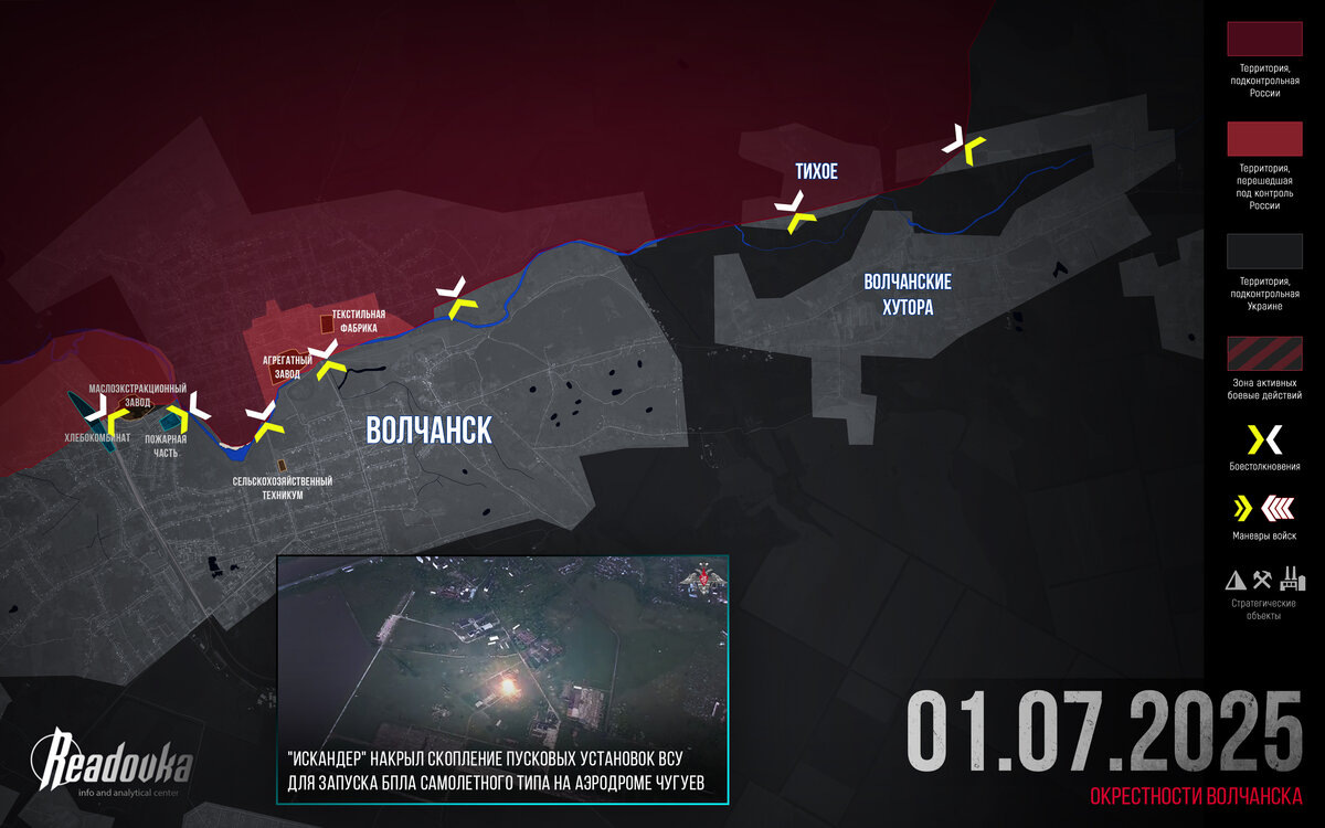 Редакция Readovka собрала самые важные события 1 июля в разрезе СВО. Русские войска приступили к штурму той части Волчанска, которая расположена на южном берегу реки Волчья. Редакция Readovka в беседе с «Архангелом Спецназа» рассмотрела оперативную обстановку к северо-западу от Купянска. На Украине забили тревогу касательно критического дефицита средств ПВО..