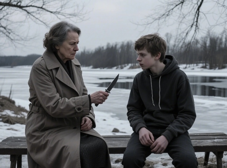 Она полезла в сумку и достала отцовский рыбацкий нож. Тяжелый, с потемневшей от времени рукоятью. Лезвие тускло блеснуло в сером свете дня. Она протянула его сыну.