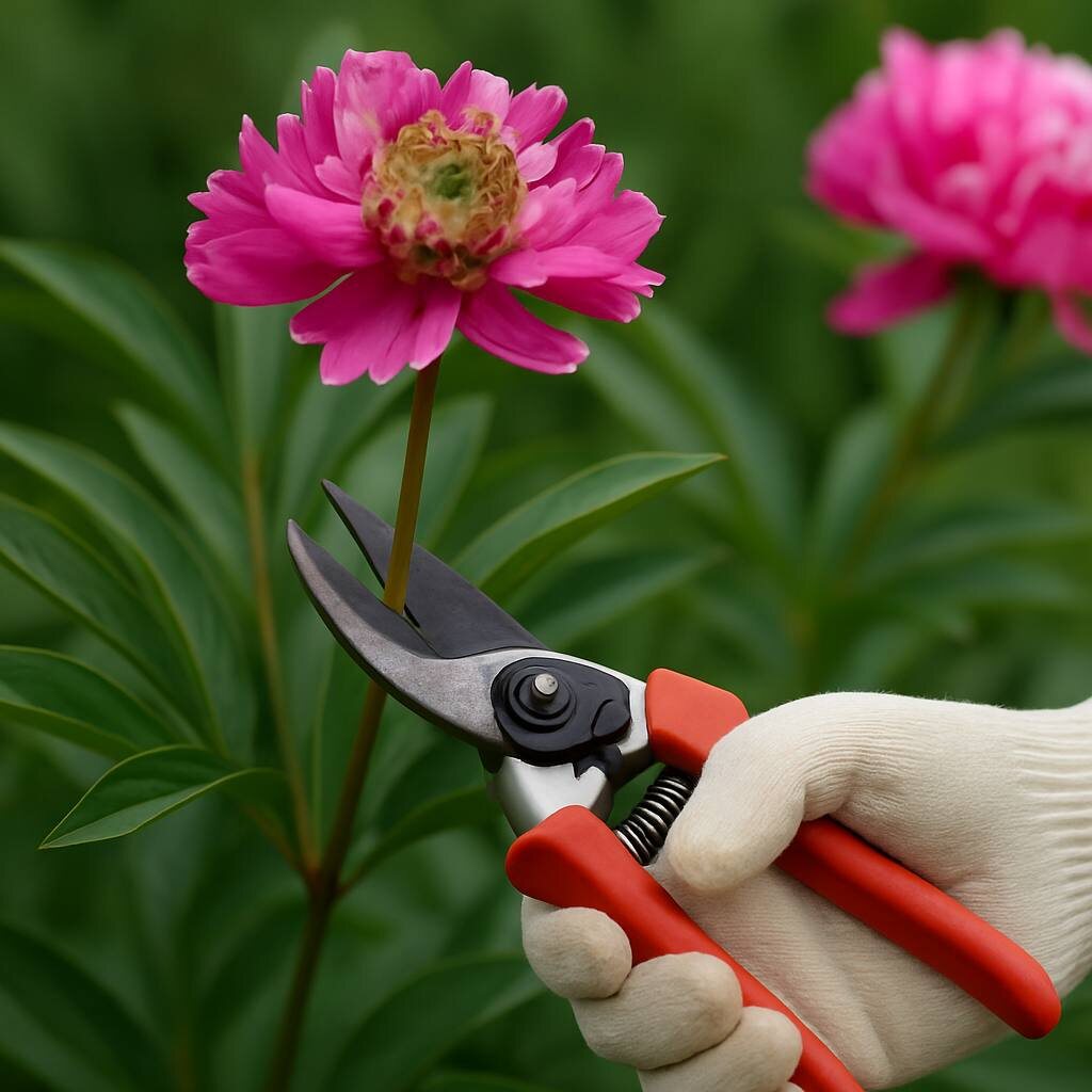 Когда пионы отцветают, многие дачники просто любуются зелёным кустом до осени. Но я делаю иначе — срезаю цветоносы. Специально и вовремя. Не потому что “красота прошла”, а потому что это помогает пиону цвести пышно в следующем году. Рассказываю, зачем это нужно, как не навредить и что делать после обрезки. Это не каприз, а уход, проверенный годами. - 🌸 Почему я убираю отцветшие цветы у пионов ✅ 1. Чтобы не тратить силы на семена Пион — упрямый. Даже если вы семена не собираете, он всё равно тратит ресурсы на их формирование. А они ему не нужны. Все силы уходят в никуда. ✅ 2. Чтобы не загустеть куст Если не срезать, то растение перераспределяет питание неравномерно. Побеги вытягиваются, листья мельчают, центр куста редеет. А значит, меньше бутонов в будущем. ✅ 3. Чтобы не развивались болезни Отцветшие лепестки могут загнивать прямо на кусте — особенно в дождливую погоду. А это — риск грибков, серой гнили и прочих проблем. ✅ 4. Чтобы пион был красивым до осени После обрезки он выпуска