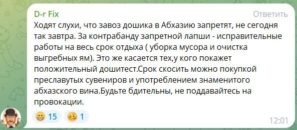 Туристы позитивно отнеслись к попытке абхазской стороны обыграть негатив, связанный с «Дошираком». Судя по комментариям в Крыше, абхазский шоколад с начинкой из «дошика» под фруктовым соусом стал неплохим ответом распиаренному «дубайскому шоколаду». Многие пользователи положительно оценили стремление жителей Абхазии превратить скандал, связанный с высказыванием абхазской чиновницы, в иронию. А некоторые даже подхватили забавный тренд. Подробнее написали на ТурДоме. @tourdom