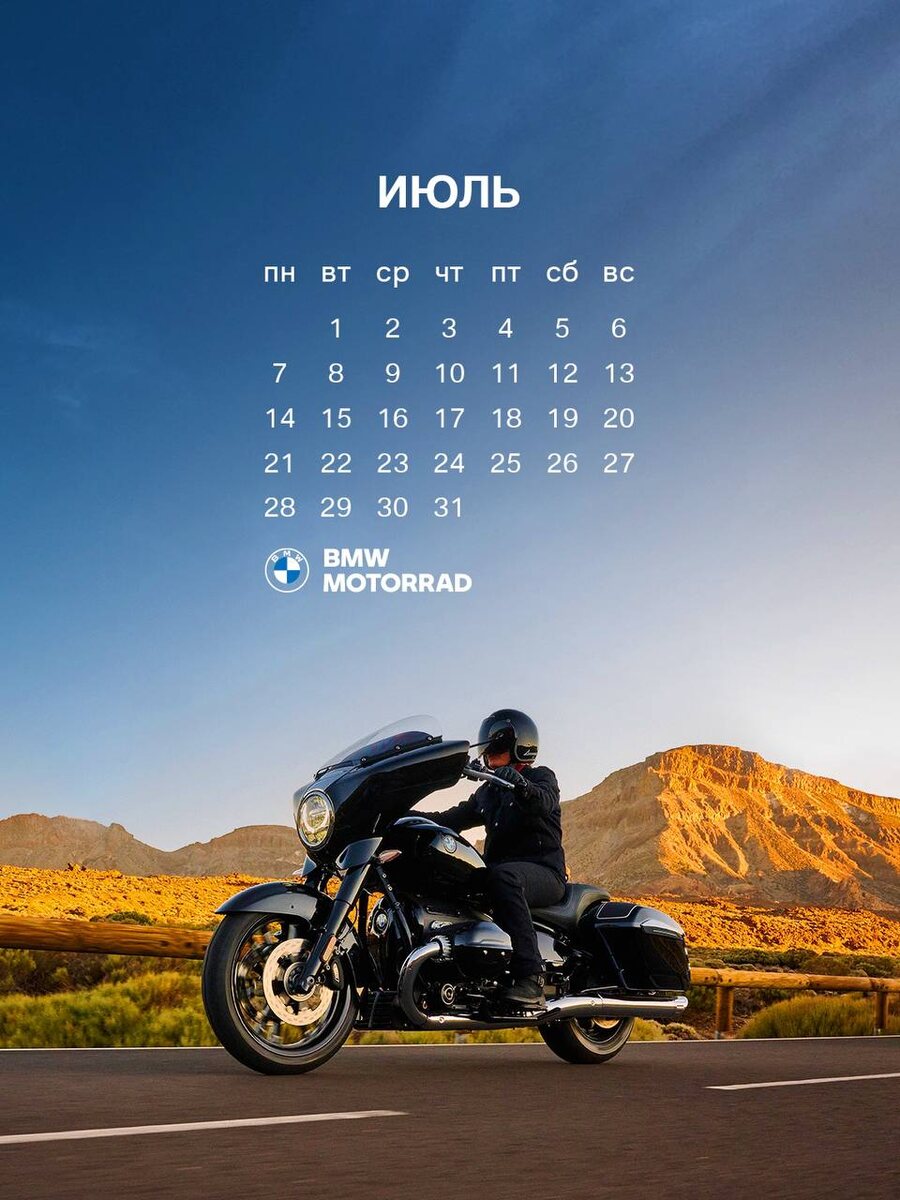 Друзья! У нас отличная новость - лето все еще в полном разгаре и до экватора далеко! 🐎А значит, сезон поездок на железном коне продолжается. Желаем вам ярко провести июль и исколесить все дороги с теплым попутным ветром. Ловите календарь на июль от BMW Motorrad Автодом: https://disk.yandex.ru/d/8ZuCl3nEpR36Ng