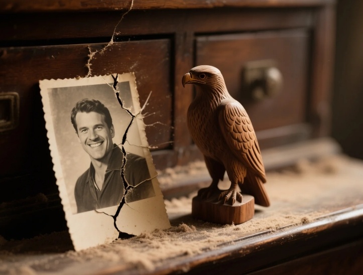 Ирина смотрела не в окно, а в его отражение. Там, за ее уставшим плечом, на старом лакированном комоде стояла фотография. Отец, Лев Андреевич, молодой, с задорным чубом, держит ее, пятилетнюю, на руках. Он улыбается, но глаза серьезные, будто смотрят мимо объектива, в какую-то свою, известную лишь ему одному, даль. Рядом с фотографией лежал маленький деревянный сокол, вырезанный его рукой. Гладкий, отполированный тысячами прикосновений. Символ ее детства. Символ его силы.