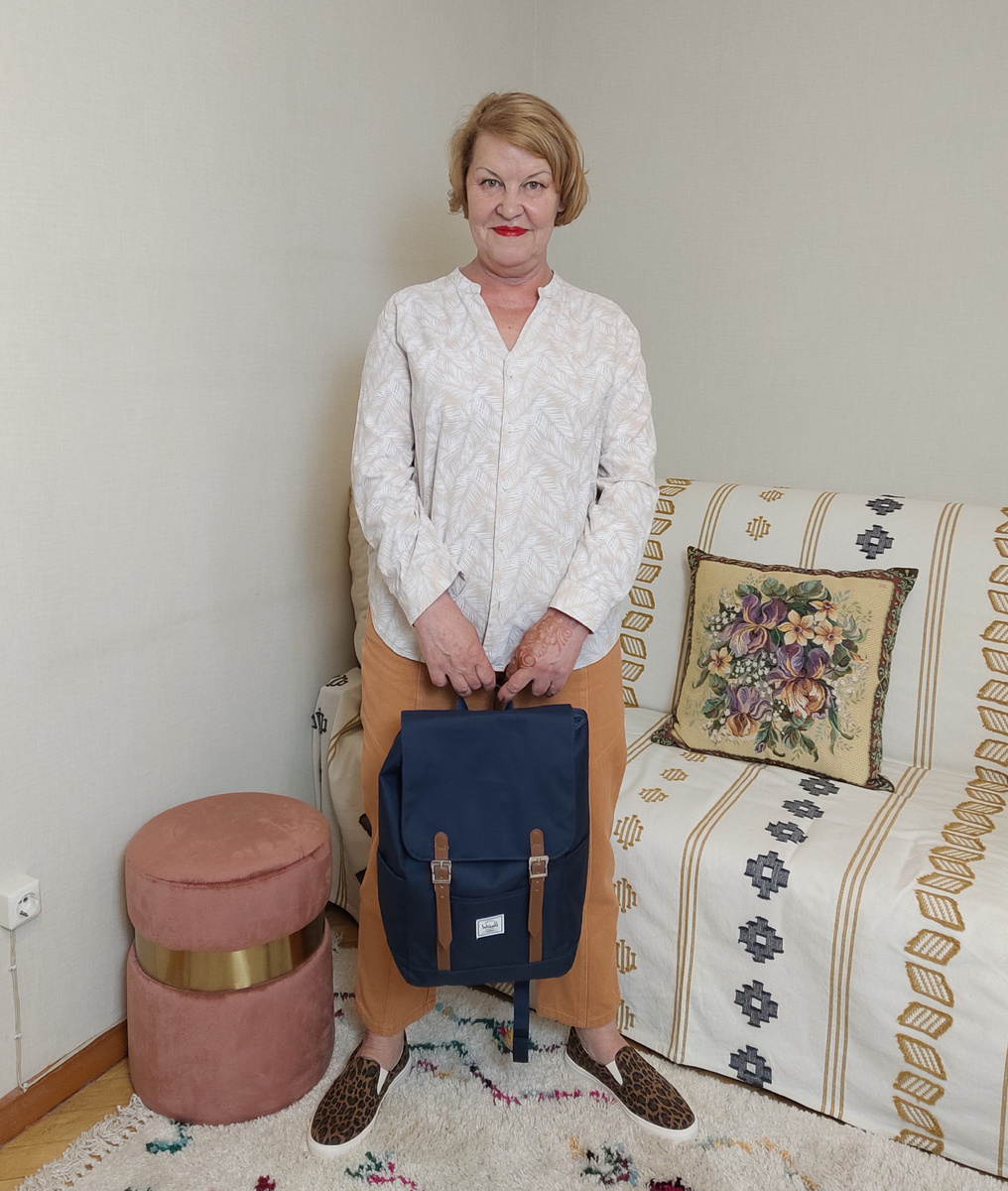 Всем привет дорогие друзья! Некоторые подписчики заметили, что я была с этим рюкзаком в Питере. Да, это правда, была. Но откуда он у меня появился я не рассказала, просто потому, что перед поездкой не нашлось на это времени. На самом деле я его приобрела как раз для таких поездок. И первоначально даже не хотела брать с собой чемодан. Но потом все-таки чемодан взяла, так как этим летом с погодой творится нечто непонятное. Она меняется каждый день, а мне хотелось выглядеть в северной столице не хуже, чем в Москве. В общем, большинство вещей мне в Питере не пригодилось. Я брала с собой пару платьев, четыре блузки, пару джинсов, пару футболок, легкую ветровку и джинсовый пиджак. На самом деле погода в Питере была настолько жаркой, что я постоянно ходила в футболках и джинсах. Из джинсов, я больше всего люблю вот эти оранжевые. Они имеют очень удобный крой. За счет этого. Смотрятся всегда красиво и аккуратно. Кроме того, они имеют длину 7/8. Это не коротко, но и не длинно. Для лета оче