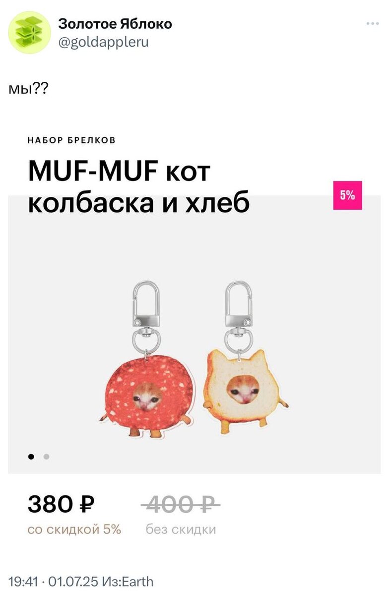 В Золотом Яблоке нашли парные брелоки в виде колбаски и хлеба. Вы знаете, кому такое дарить ❤️