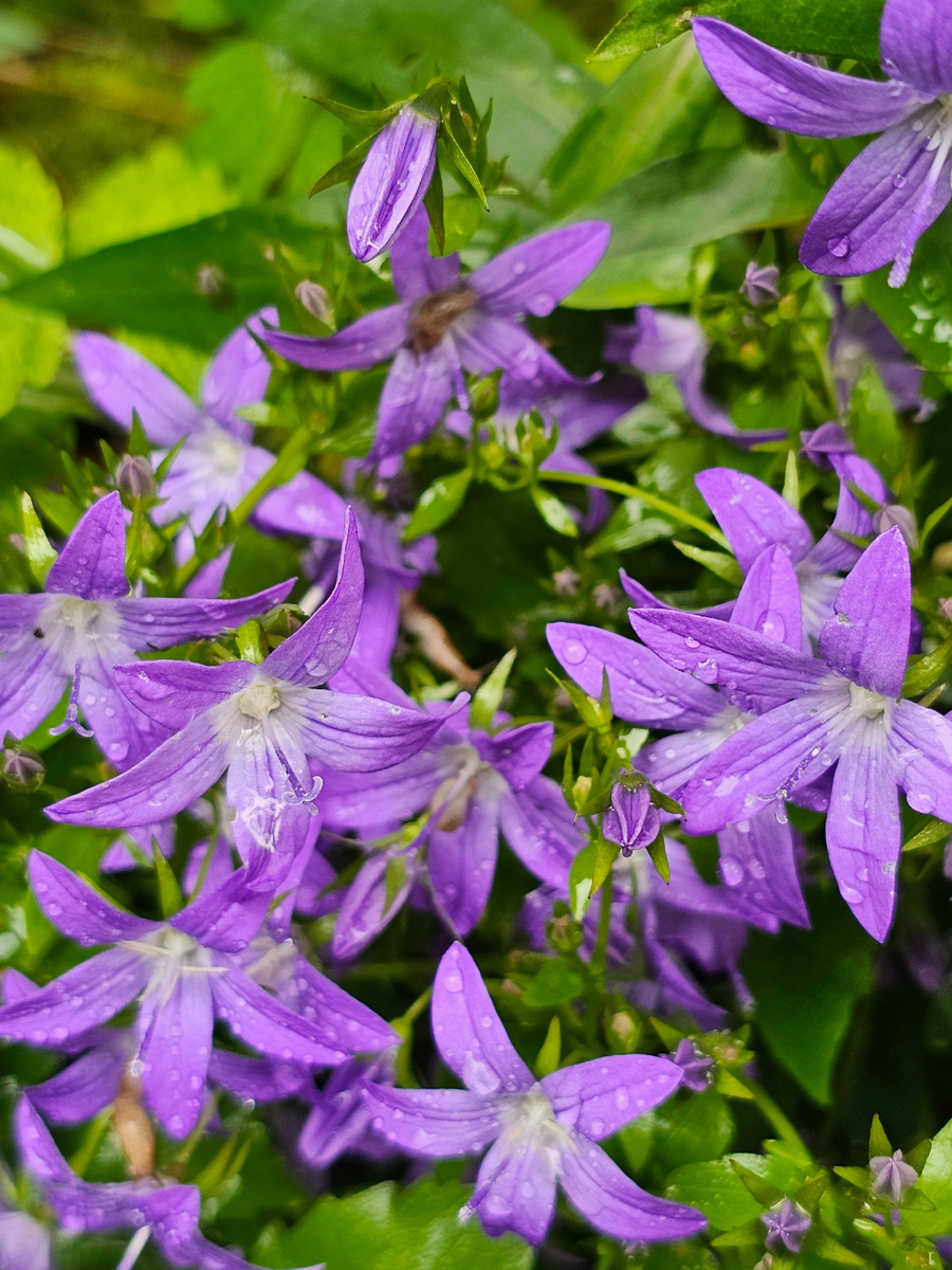 Неприхотливый многолетник - колокольчик Пожарского (Campanula poscharskyana) - почвопокровное растение, которое образует плотные куртины до 20 см высотой и до 80 см шириной. Листочки мелкие, округлые, с зубчатыми краями. Образуют прикорневую розетку. Они имеют красивый зелёный цвет, который прекрасно оттеняет нежные цветочки, что придаёт декоративность этому растению. Стебли ложатся на землю от невероятно огромного количества цветков - смотрится это очень трогательно и изящно. Этот колокольчик быстро разрастается и со временем создаёт живописные ковры. Цветки мелкие, звёздчатые, лавандово-голубые, синие или темно-синие - зависит от состава почвы и освещения. Собраны в рыхлые соцветия. Цветёт обильно и продолжительно с начала лета до заморозков. Привлекает пчёл и бабочек. Цветы закрываются на ночь и открываются при солнечном свете. Колокольчик Пожарского отлично подходит для использования в качестве почвопокровного растения, так как его побеги стелются по земле и образуют плотный ковё