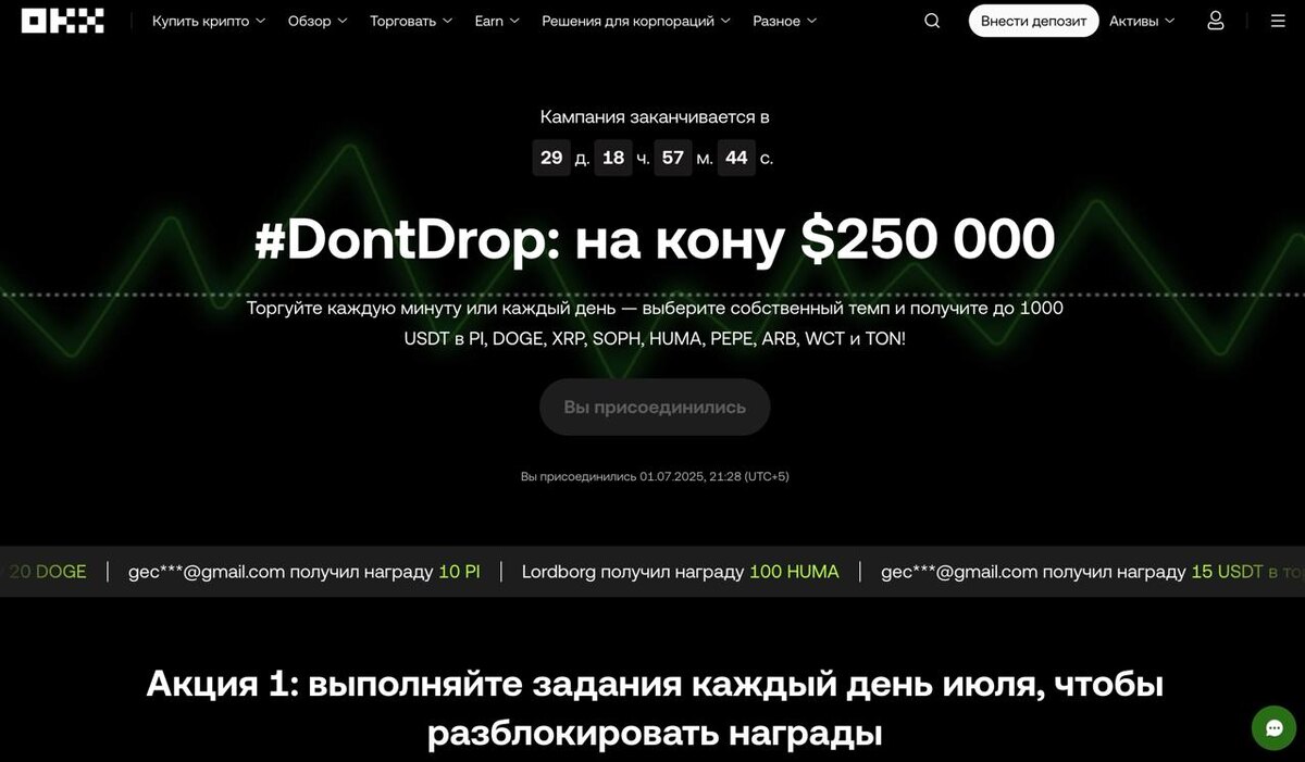 💰 🌂 Забираем моментальные награды на OKX из призового фонда в $250 000