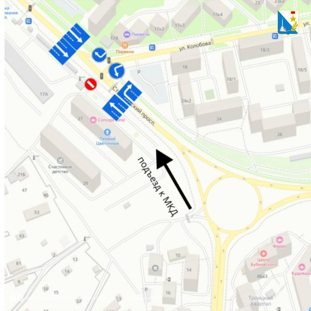 Изменения в движении на Столетовском проспекте С 28 июня въезд к домам №27 и 29 по Столетовскому проспекту возможен только через новую кольцевую развязку. Левый поворот с ул. Колобова (со стороны ул. Борисова) теперь запрещён — для заезда нужно использовать кольцо. 🍂Для жителей обустроен альтернативный въезд с временным покрытием, там вскоре будет уложен асфальт. Изменения связаны с реконструкцией участка, включающей новое освещение, тротуары и коммуникации. Сегодня руководство дептранса встретилось с жителями и объяснили людям необходимость работ. Правительство Севастополя