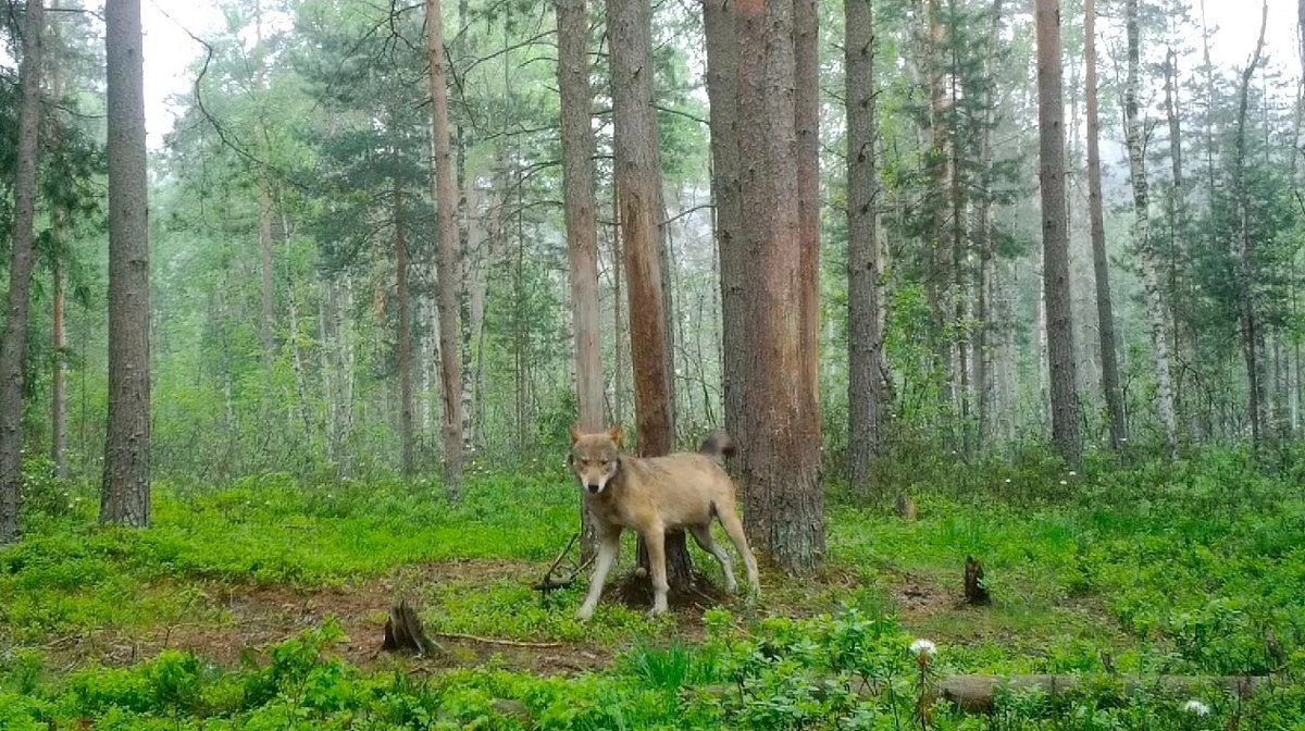 В лесу Всеволожского района фотоловушка зафиксировала волка