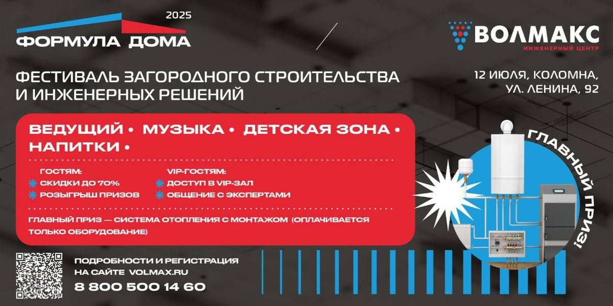 🏠 Грандиозное событие в мире загородного строительства! 12 июля в Коломне состоится уникальный фестиваль «Формула Дома» от Инженерного Центра Волмакс! 🏗 Почему это событие нельзя пропустить: 🚩Просторная площадка 1500 кв.м для комфортного знакомства с новинками 🚩Более 25 компаний — производителей и поставщиков решений для вашего дома 🚩Целевая аудитория — единомышленники и профессионалы отрасли Специальный гость - 🤩 амбосадор Клуба Монтажники ОВиК Ян Новы‼️ Что вас ждёт: 🚩Выставочная зона с демонстрацией всех новинок 🚩Развлекательная программа с профессиональным ведущим 🚩Информационный каталог с описанием всех участников Не упустите возможность стать частью этого масштабного события и выиграть систему отопления с монтажом!! Регистрируйтесь прямо сейчас! 🎟️ 👉 Подробности и регистрация: https://volmax.ru/company/news/festival-zagorodnogo-stroitelstva-i-inzhenernykh-resheniy-formula-doma-2025/ #ФормулаДома #Волмакс #ЗагородныйДом #Строительство #Коломна #Фестиваль #МОВИК