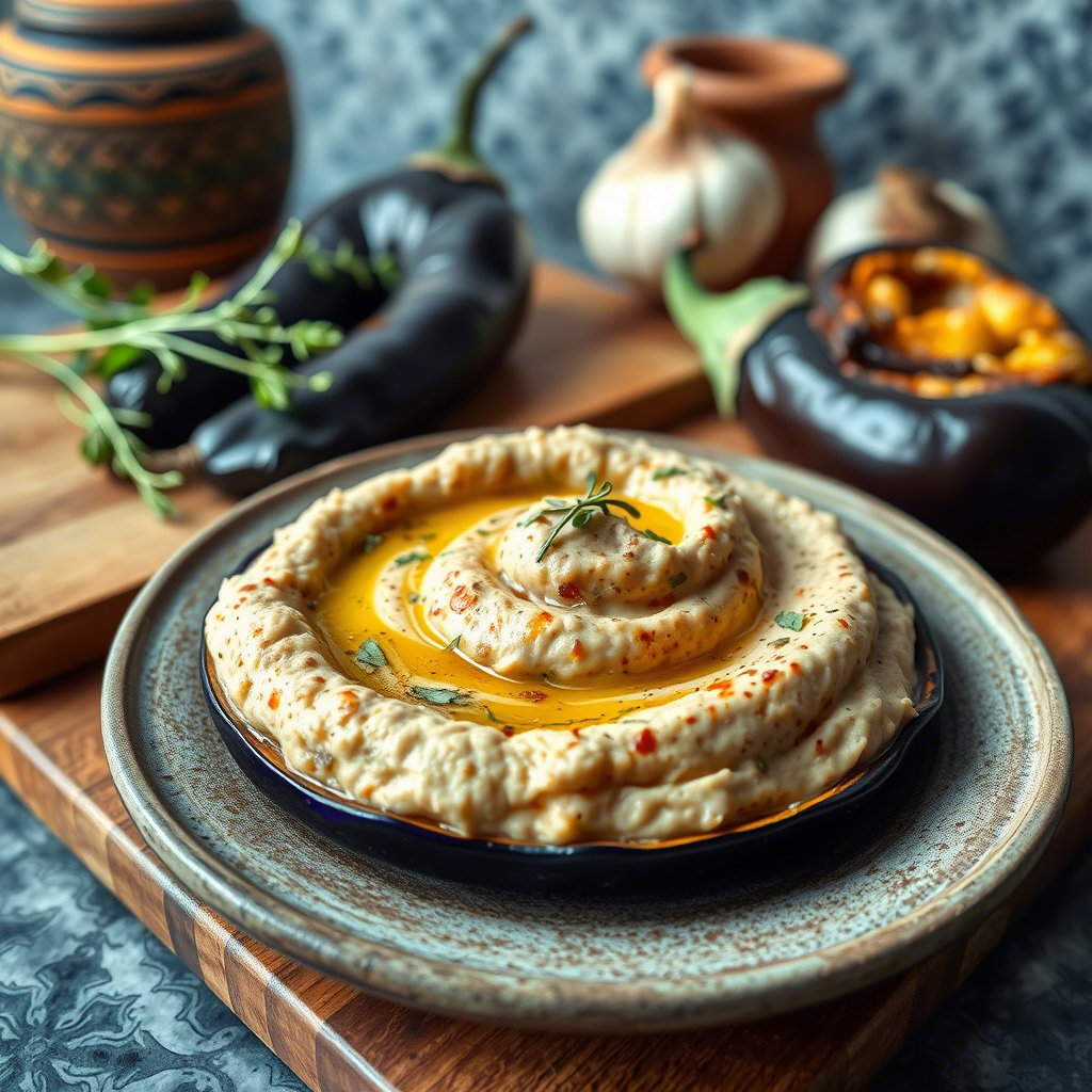 Баба-гануш — это популярное ближневосточное блюдо, приготовленное из запечённого баклажана, тахини (пасты из кунжута), оливкового масла, лимона и специй. Это очень вкусная закуска или намазка на хлеб. 🧂 Ингредиенты (на 4–6 порций): - 2 крупных баклажана (около 800 г) - 50 г тахини (кунжутной пасты) (~3 ст. ложки) - 1–2 зубчика свежего чеснока (по вкусу) - Сок 1 среднего лимона (~3–4 ст. ложки) - Оливковое масло первого отжима около 5–6 ст. ложек (2 для запекания + 2–3 для подачи + немного на сковородку, при желании) - Соль по вкусу (обычно ½ ч. ложки) - Вода или ледяная вода 1–3 ст. ложки (для регулирования консистенции) - Щепотка молотого тмина (зиры), необязательно, но добавляет аромат - Паприка сладкая или копчёная, мелко нарезанная петрушка — для украшения - Копчёная паприка или дымная специя опционально, для дополнительного дымного вкуса 🔪 Пошаговое приготовление: Шаг 1: Подготовка баклажанов - Промой баклажаны под холодной водой и обсушите бумажным полотенцем. - Сделай