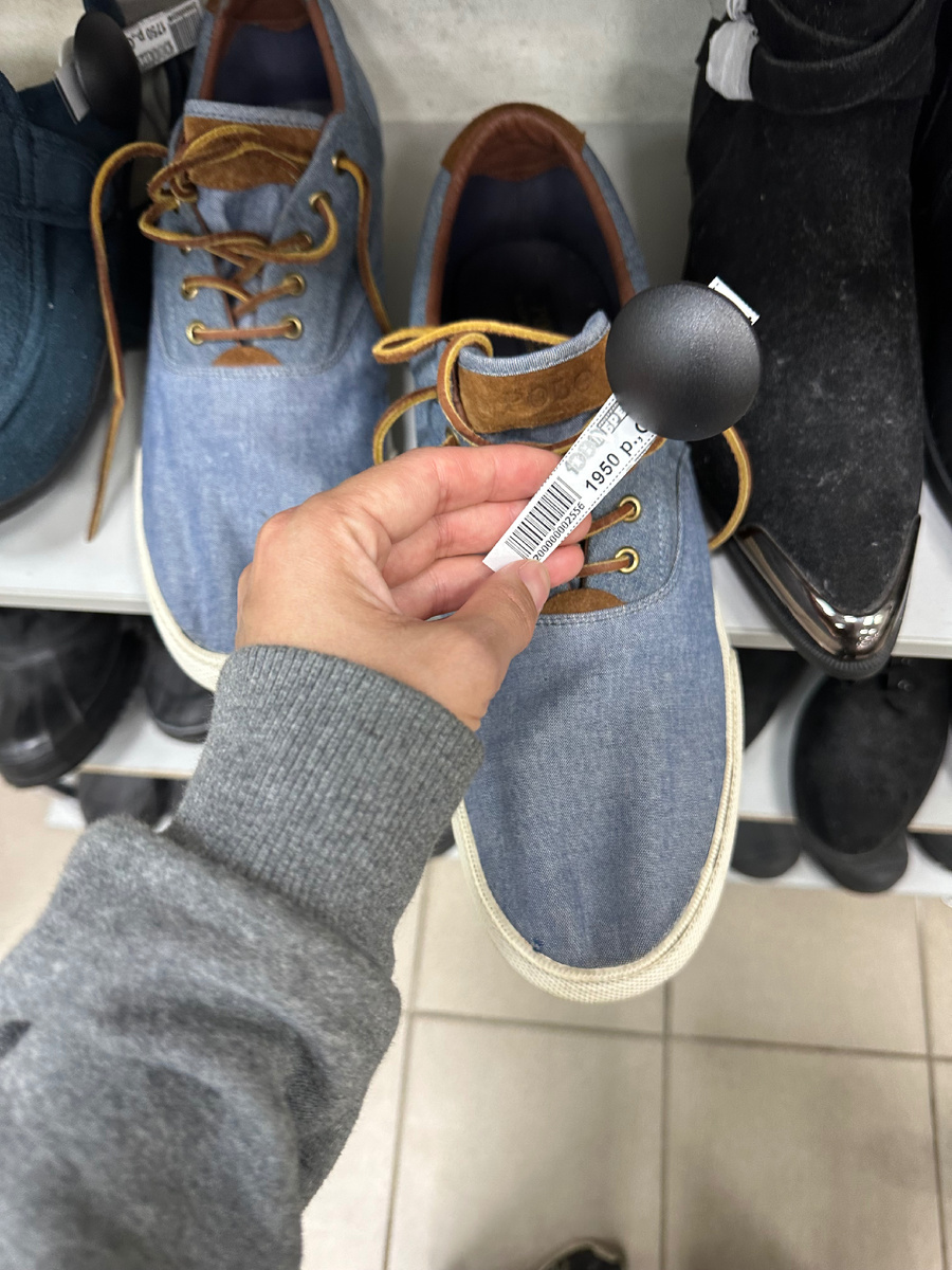 Всем моим читателям доброго времени суток 🫶 Меня зовут Оля и я очень люблю моду, гулять по секондам в поисках сокровищ, исследовать музеи и путешествовать. Пару дней назад я выложила обзор на футболки из секонда, на который я никогда до этого не делала обзоры, хотя регулярно его посещаю и периодически что-то себе покупаю. Концепция от Во-вы, в из которого я чаще всего делаю обзоры, отличается. Здесь привозятся вещи в основном из США и действует постоянная скидка почти на все 30%, иногда ее повышают до 50%. Там не так много обуви, но бывает попадается новая и очень классная (типа новых оригинальных ugg, но это не всегда и цены там, откровенно говоря, повыше, чем в том же Во-ва, но не на все). И в этой статье я покажу, что там можно найти из обуви и по каим ценам (сейчас там на обувь "неурожай", зимой и весной было раз в 10 больше разных вариантов). Все цены, которые указаны на бирках надо делить на 2, так как когда я там была на все была скидка 50 процентов. Начну вот с такой мужской п