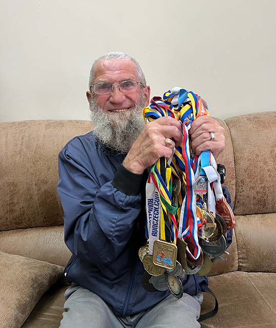 – Некоторые считают награды поштучно, а я – на килограммы, – говорит он, доставая тяжелый пакет с медалями. – Килограммов пять тут наверняка будет!