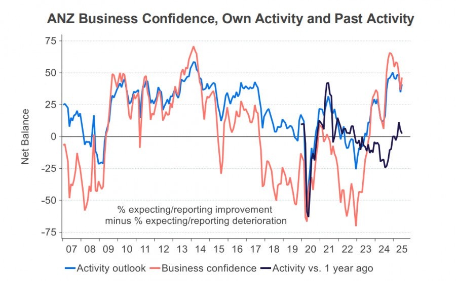 https://basechop.ru/wordpress/?p=48848 Обзор деловой активности в Новой Зеландии от ANZ показал противоречивые результаты, активность подскочила сразу на 9п до 46% на ожиданиях улучшения условий ведения бизнеса, ожидаемая собственная активность выросла на 6п до 41%. В то же время оценка прошлой активности снизилась на 3п до 2%, а прошлая занятость осталась на -10п, оба последних показателя выглядят пока слишком слабо. Ожидания по росту цен и издержкам еще слишком велики, чтобы рассчитывать на уверенное снижение инфляции, чистые 46.3% опрошенных предприятий ожидают повышения цен, и пока такие ожидания заметно выше уровней, которые обычно наблюдаются при ценовой стабильности. Инфляционные ожидания домохозяйств также еще слишком велики, в июне они выросли с 4.6% до 4.9%, то есть тенденция к росту сохраняется. Другие данные также отмечают рост уверенности, последний квартальный опрос NZIER показал росл деловой уверенности во 2 квартале, самым оптимистичным оказался сектор розничной…