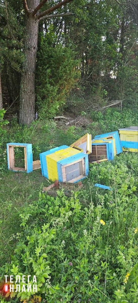 Тот самый медведь в Литве проник на пасеку и разнес ульи, выкрашенные в цвета украинского флага. Косолапый диверсант, предположительно, зашел из Белоруссии.