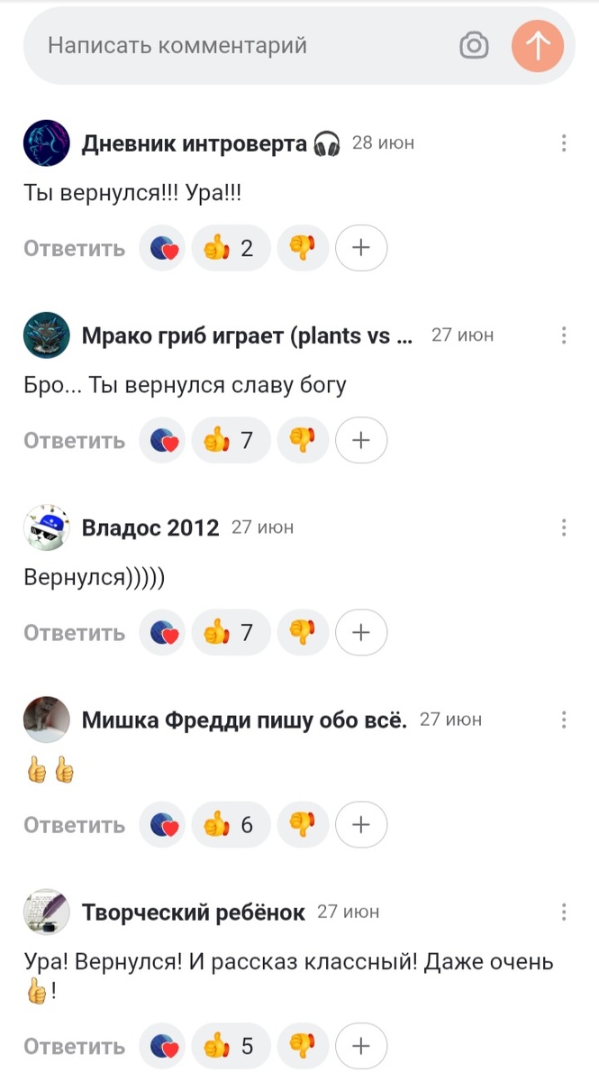 Салют! Добро пожаловать на мой канал. Приятного чтения! Есть хорошая новость о мультодзенере "Снотворец". Он вернулся!!! Судя по всему, его уход с Дзена был лишь усталостью, несущей временный характер, что очень обрадовало подписчиков! Также, он переименовал канал. Теперь он называется "Уникальный смешарик". С момента паузы автор канала выпустил 2 статьи: "Смешарики в пункте назначения" и "Угадай серию по кадру". Произошла, так называемая, перезагрузка канала. Мы все очень рады его возвращению! Хочется пожелать нашему другу как можно дольше радовать нас своими публикациями!