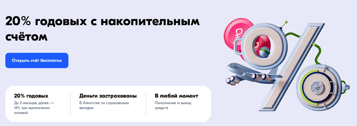 Предложение для новичков: 20% годовых в первые 2 месяца для новых клиентов (не было накоп. счетов за последние 90 дней).