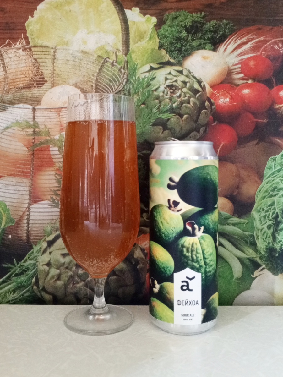 Ещё один сорт от Alaska из "Перекрёстка", который тоже стоит попробовать [при желании или же возможности]. "Фейхоа" Пивной напиток нефильтрованный непастеризованный неосветлённый "Фейхоа" Состав: вода подготовленная (исправленная), солод пивоваренный (ячменный, пшеничный), сок фейхоа концентрированный, хмель прессованный, дрожжи пивные. Объем: 0,45 л. Изготовитель: ООО "АЛЯСКА" (Московская область, г. Балашиха) Цена: 249 рублей 99 копеек Дата розлива: 12.01.2025 Фейхоа - ароматный и сочный плод с зеленой кожурой, мясистой мякотью и желеобразной сердцевиной с семенами. В крафтовом пивоварении встречается часто в различных комбинациях Sour Ale. Его изображение мы видим на этикетке пивной банки. В бокале пивной напиток мутно-оранжевого цвета. Пены не образует. Имеет специфический, сладковато-горький привкус. Вкус и аромат идентичен натуральному плоду фейхоа. Весьма интересно! Немного экзотики не помешает. Определённо не на каждый день, но иногда можно себе такое позволить. Скорее понравил