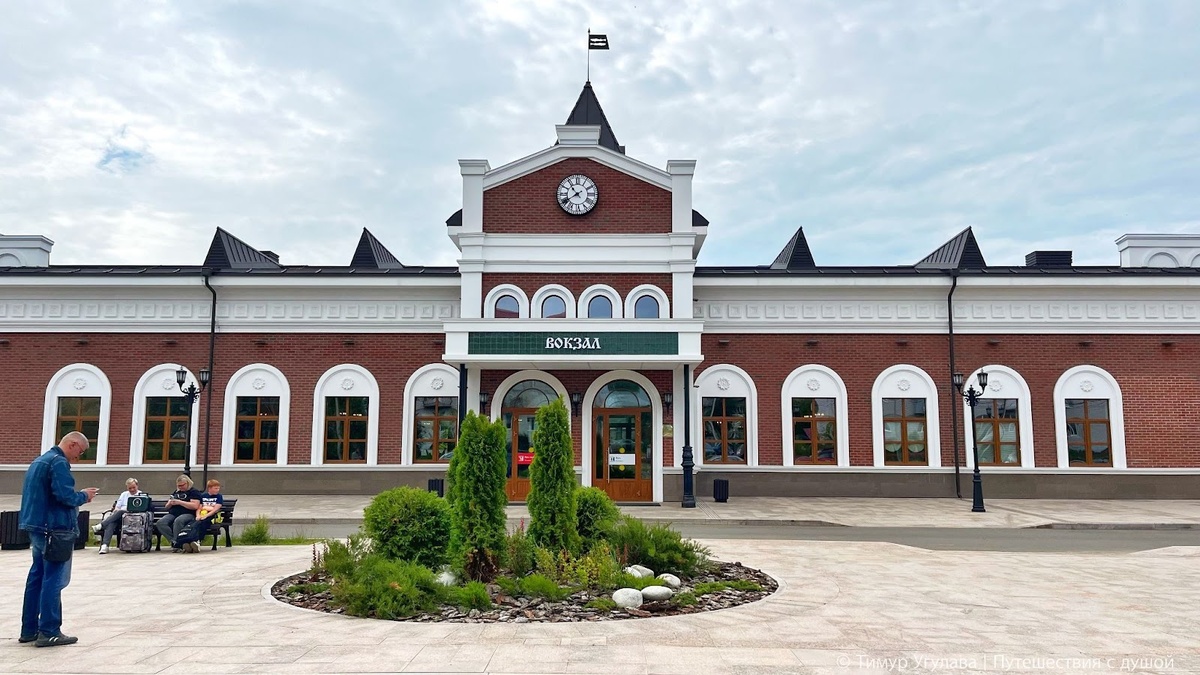 Вместо этого — неорусский ретростиль, башенка, арки, красный кирпич, отсылающий к дореволюционным станциям. И особенно ценно то, что всё это органично вписалось в исторический ландшафт города-музея.