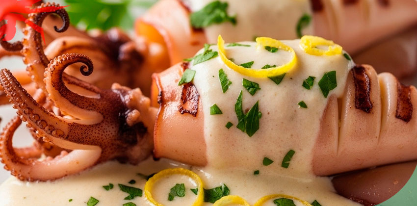 прозрачности, затем добавляем чеснок и готовим ещё минуту. Добавляем вино и доводим до кипения. Нарезаем кальмары кольцами и