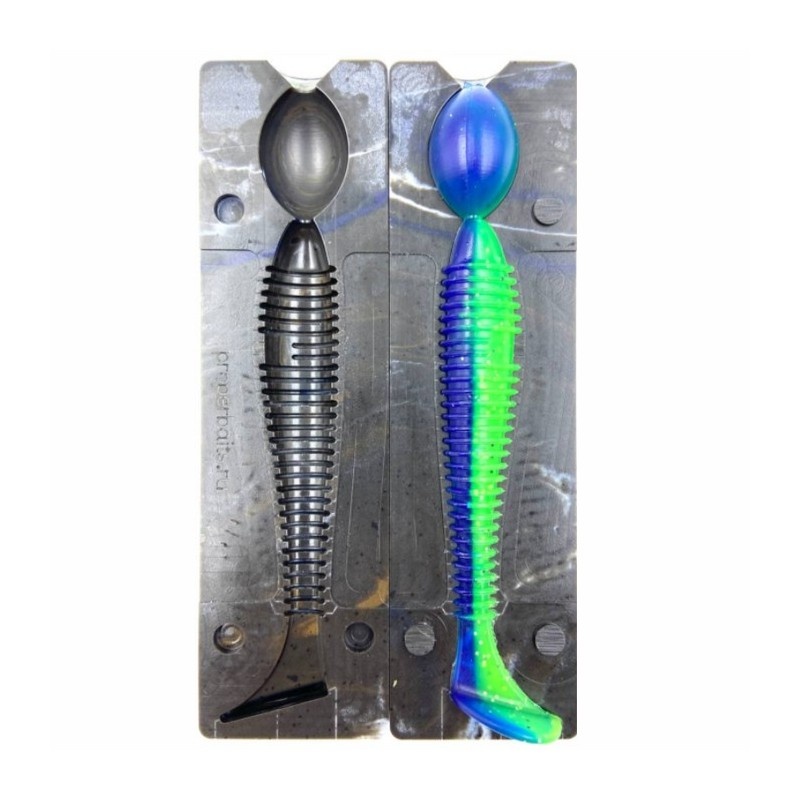 Иногда при изготовлении приманок на их теле возникают ямки, которые, по мнению некоторых, ухудшают внешний вид изделия Это явление объясняется очень просто: чем выше температура пластизоли, тем больше ее объем, чем ниже температура, тем меньше ее объем Таким образом, при заливке в форму «очень» горячего материала форма заполняется полностью и при остывании материал начинает «усаживаться» и если этот пустой объем ни чем не компенсировать, появится яма. Именно для предотвращения подобного создаются усадочные камеры, которые располагаются перед носом приманки. Их величина определяется долей объема приманки. Чем более объемная приманка, тем больше объем усадочной камеры Особенно подвержены подобной реакции следующие модели: Приманки на фото все разные, но объединяет их объемное тело, которое помещает в себя большое количество пластизоли Обратите внимание, на переход из усадочной камеры в нос приманки: у данных моделей он очень узкий, а тело объемное, именно в этом месте при застывании плас