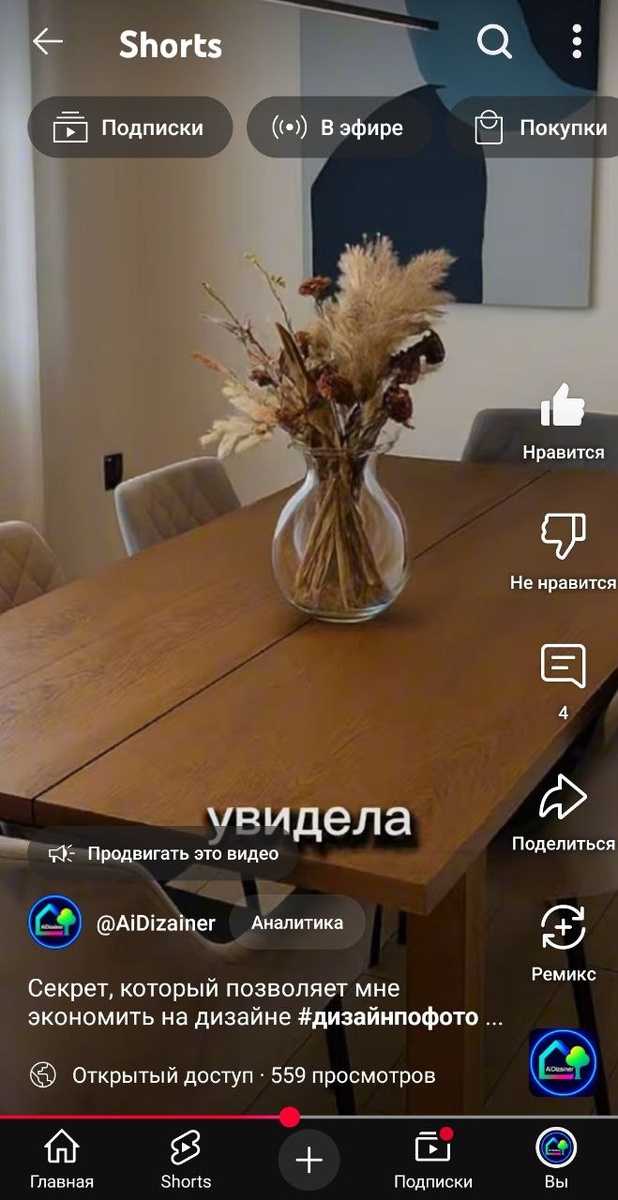 📺 Хотите поменять декор? Сначала посмотрите наш YouTube Shorts Иногда интерьеру не хватает всего одной детали: подушек, посуды, вазы. Но сложно представить, как это всё будет выглядеть именно у вас. 🧠 С Ai Дизайнером можно примерить любой декор в своём интерьере - ещё до похода в магазин. Просто загрузите фото комнаты и картинку предмета и нейросеть покажет результат. 💡 В новом ролике делимся примером, как использовать Ai Дизайнер, чтобы увидеть обновлённый интерьер за 30 секунд. 🎥 Смотрите здесь: https://youtube.com/shorts/TpXNThWNBfw 📌 Хотите визуализировать новые идеи? Отправьте фото и описание в @AiDizainer_bot #интерьер #декордома #дизайнпофото #визуализация #идеи #аидизайнер #иидизайн