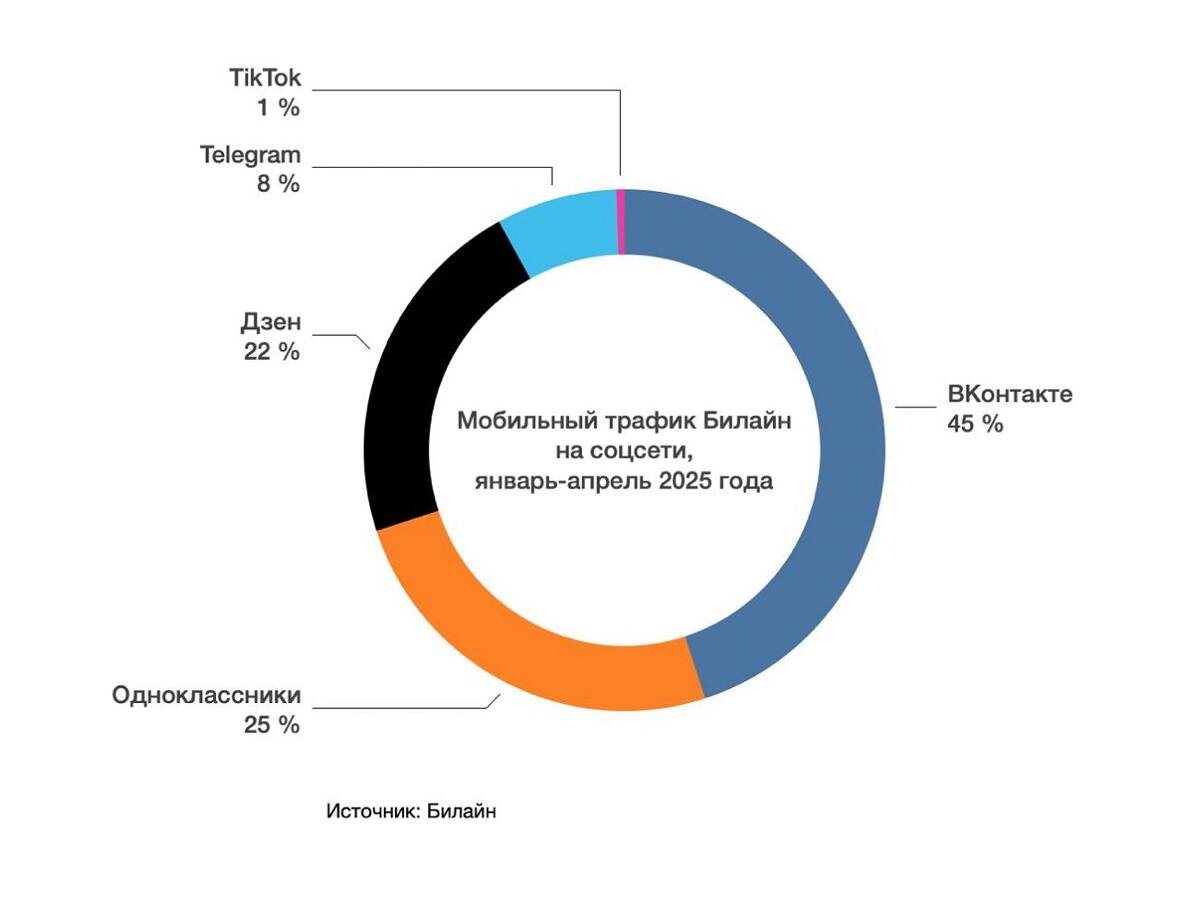 Хотите узнать, где на самом деле сидят ваши клиенты? Не в Телеграме. Не в запрещённой инсте. И даже не в модных чатиках с аватарками в стиле нейросетей. 📊 По свежим данным (январь–апрель 2025): 🥇 ВКонтакте — почти 45% всего мобильного трафика среди соцсетей в России 🥈 Одноклассники — 25% 🥉 Дзен — 22% 📉 Telegram — 7,5% 😶🌫️ TikTok — 0,5% А теперь честно: Вы вкладываетесь в те площадки, где реально сидит аудитория? Или туда, где «все эксперты» советуют быть? 🙃 Пока одни «строят воронки в Телеге», другие получают заявки из ВК по 60₽ — и молчат. 📌 Если хотите продавать — начните с простого: Будьте там, где люди уже есть. Не доказывайте им, что Телеграм круче. Просто дайте кнопку, в которую удобно жать.