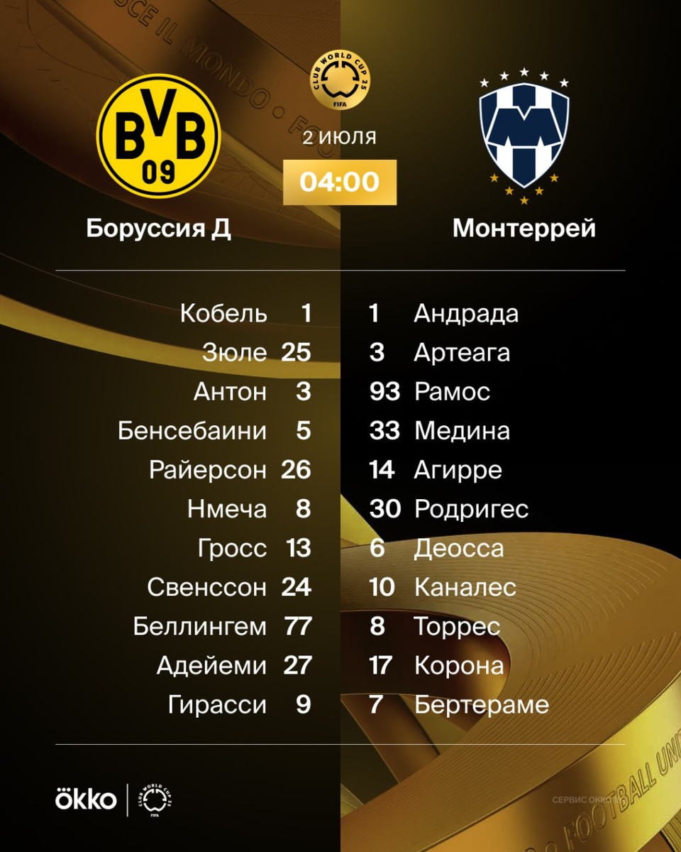 Составы на заключительный матч 1/8 КЧМ уже перед тобой! 🙌🏻 Мощнейшее нападение «Боруссии» против обороны «Монтеррея» во главе с Рамосом — кто окажется сильнее? 🔥 — немцы ❤️ — мексиканцы