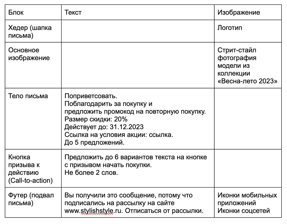 Шаг 2. Шаблон ТЗ коммуникаций