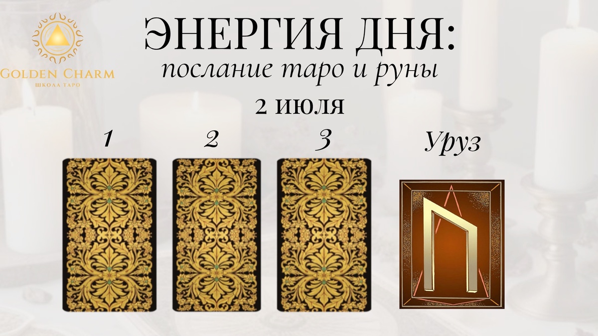 Заказать личный расклад тут✅ Прогноз на 2 июля: что тебя ждёт Приходи на обучение Таро ✅ Выбери карту — 1, 2 или 3 — и узнай, какой путь для тебя: 1. 7 Кубков Сегодня твоя фантазия разыграется. Возможно, перед тобой откроются разные перспективы и мечты станут ярче. Постарайся выбрать среди множества вариантов именно тот, что ближе всего твоему сердцу. 2. 6 Кубков День наполнится приятными воспоминаниями и встречами с дорогими людьми. Это хороший повод вспомнить прошлое, ощутить тепло души и зарядиться позитивной энергией от общения с близкими. 3. 10 Пентаклей Период стабильности и материального благополучия. Ты почувствуешь поддержку семьи и друзей, твои усилия будут вознаграждены. Наслаждайся плодами своего труда и делись радостью с окружающими. Руна дня — Уруз Этот день принесет новые возможности и вдохновение для начала новых проектов. Важно действовать решительно и уверенно, тогда успех гарантирован. Напиши цифру карты + УРУЗ в комментариях, чтобы активировать энергию. Х
