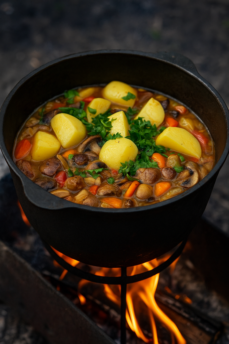 Когда природа зовёт, а душа требует настоящей еды с дымком, нет ничего лучше жаркого, приготовленного в казане на открытом огне. Этот рецепт — не просто способ вкусно накормить компанию, а настоящий ритуал, объединяющий тепло костра, аромат леса и магию живого огня. Мы собрали для вас подробный, пошаговый рецепт жаркого с грибами, который легко повторить, даже если вы не гуру кулинарии. И поверьте, однажды попробовав — вы будете готовить его снова и снова. Грибы — уникальный ингредиент. Они впитывают ароматы дыма, овощей и специй, становясь сердцем блюда. А казан и костёр делают из простого набора продуктов нечто особенное: насыщенное, ароматное, глубокое по вкусу. Это блюдо не требует кулинарных изысков — лишь немного терпения, правильные продукты и хорошая компания у костра. Перед началом убедитесь, что казан чист и прогрет. Лучше использовать казан объёмом не менее 8 литров, с толстыми стенками. Дрова — сухие, желательно из фруктовых деревьев: яблоня, груша, вишня придадут блюду т