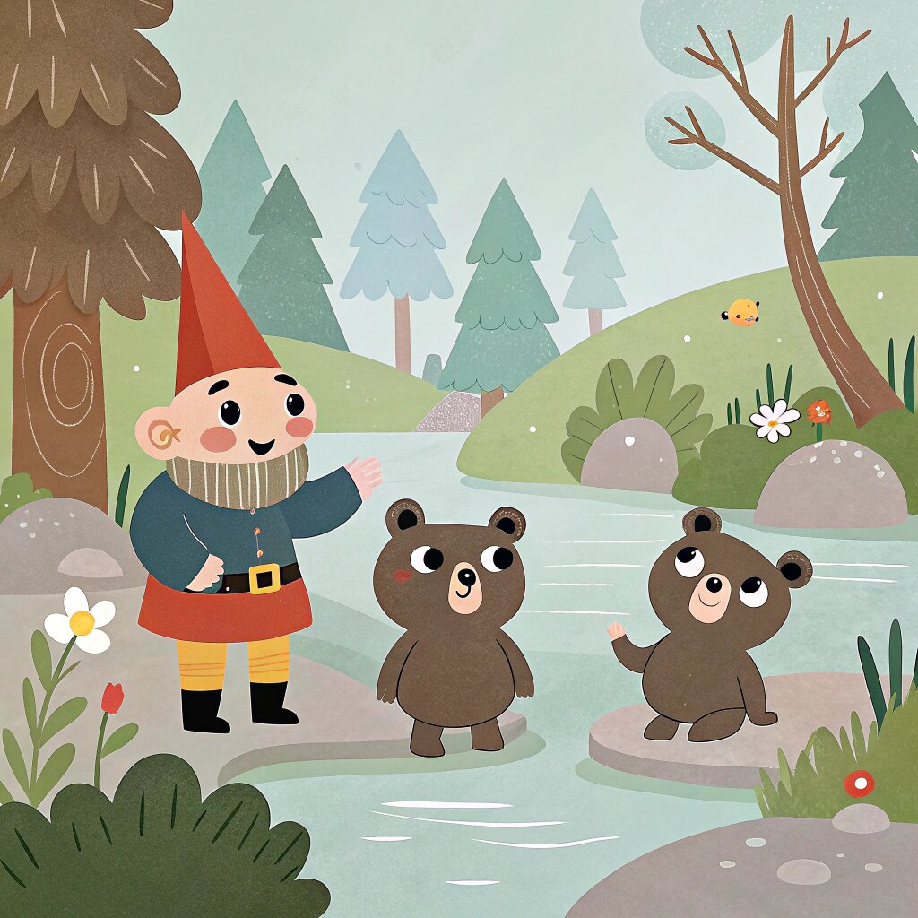 Наступило утро, но Громыхайло даже не успел позавтракать — в дверь постучали! На пороге тревожно переминался с ноги на ногу медвежонок Топотун: — Мой горшочек с медом разбился! Мама сказала, что без горшка нам зимой придется туго... Гномик не мог отказать. Он взял заплатки (специально для хрупких вещей) и отправился в берлогу. Медвежата, играя в догонялки, задели полку. Все горшочки были разбиты, и заплаткой здесь не обойтись. — Не беда! — сказал Громыхайло. — Сделаем новые горшочки из глины! Он стал учить медвежат лепить. Помогая другим, гномик всегда приговаривал: — Делай, делай, ручка, добрые дела. Делай, делай, ножка, добрые дела. Поначалу нужно было найти глину, как раз возле речки был глиняный бережок. Следующим этапом было размягчение материала лапками. Юные гончары делали это неумело и смешно. Да и к тому же все перепачкались, пришлось их отправлять купаться. Последним этапом был обжиг, и пришлось растопить печь. Но малышам нельзя брать спички. На выручку пришла лисичка Патрик