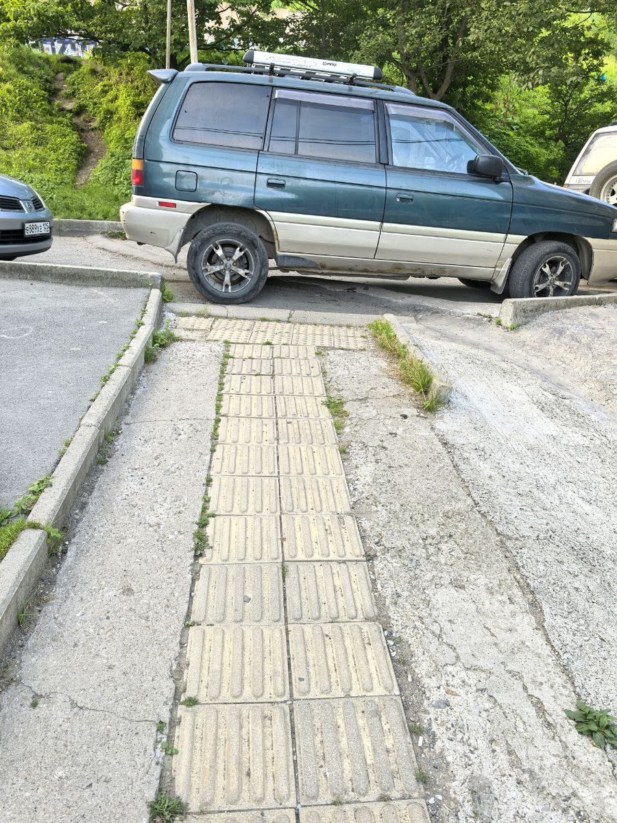 Между Беляева 6 и 8, постоянно перегораживает проход для пешеходов.