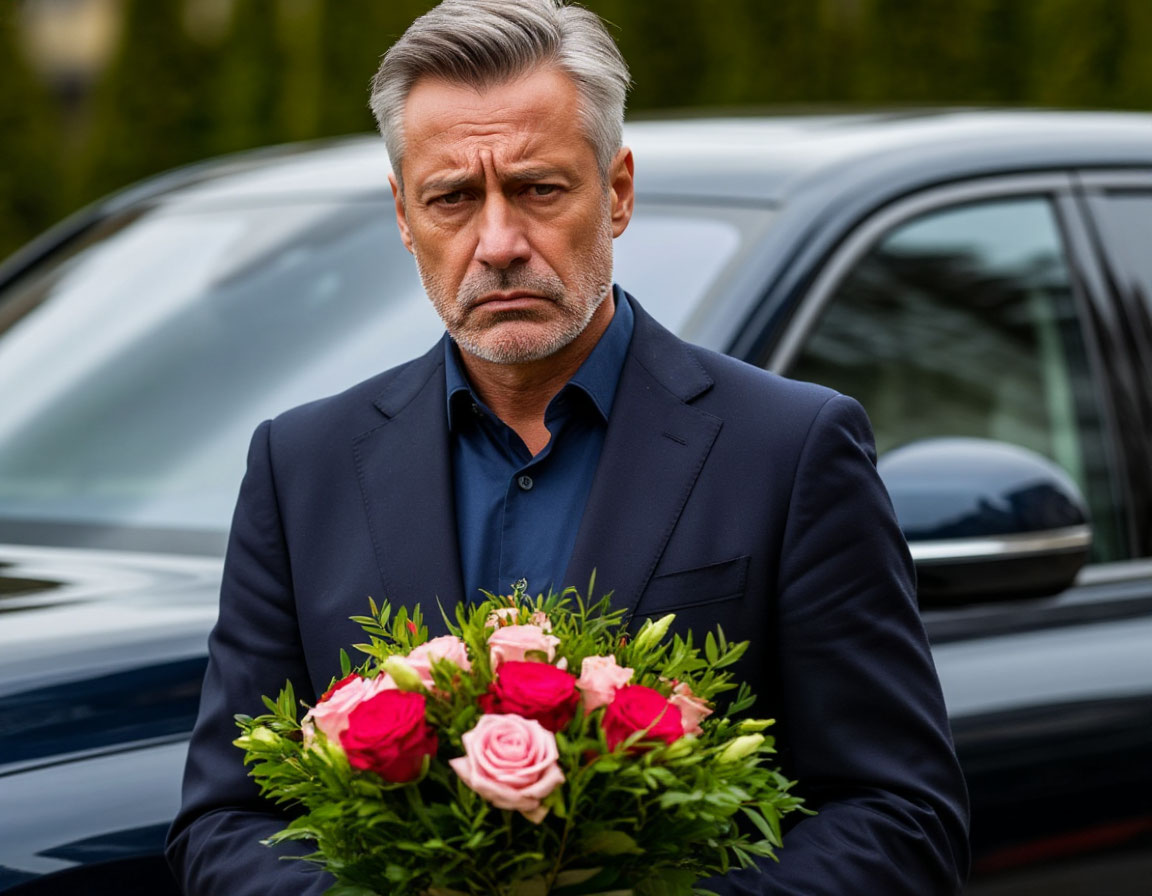Марк Борисович решил поговорить с дочкой лично, потому что все же видел за собой вину. Муж купил любимых вкусностей доченьки. Остановил машину возле дома, где была квартира Жени и пошел за большими пакетами, которые лежали в багажнике. Мужчина был озадачен, когда увидел, что у подъезда курил Всеволод Романович, а на сиденье его машины лежал огромный букет роз.