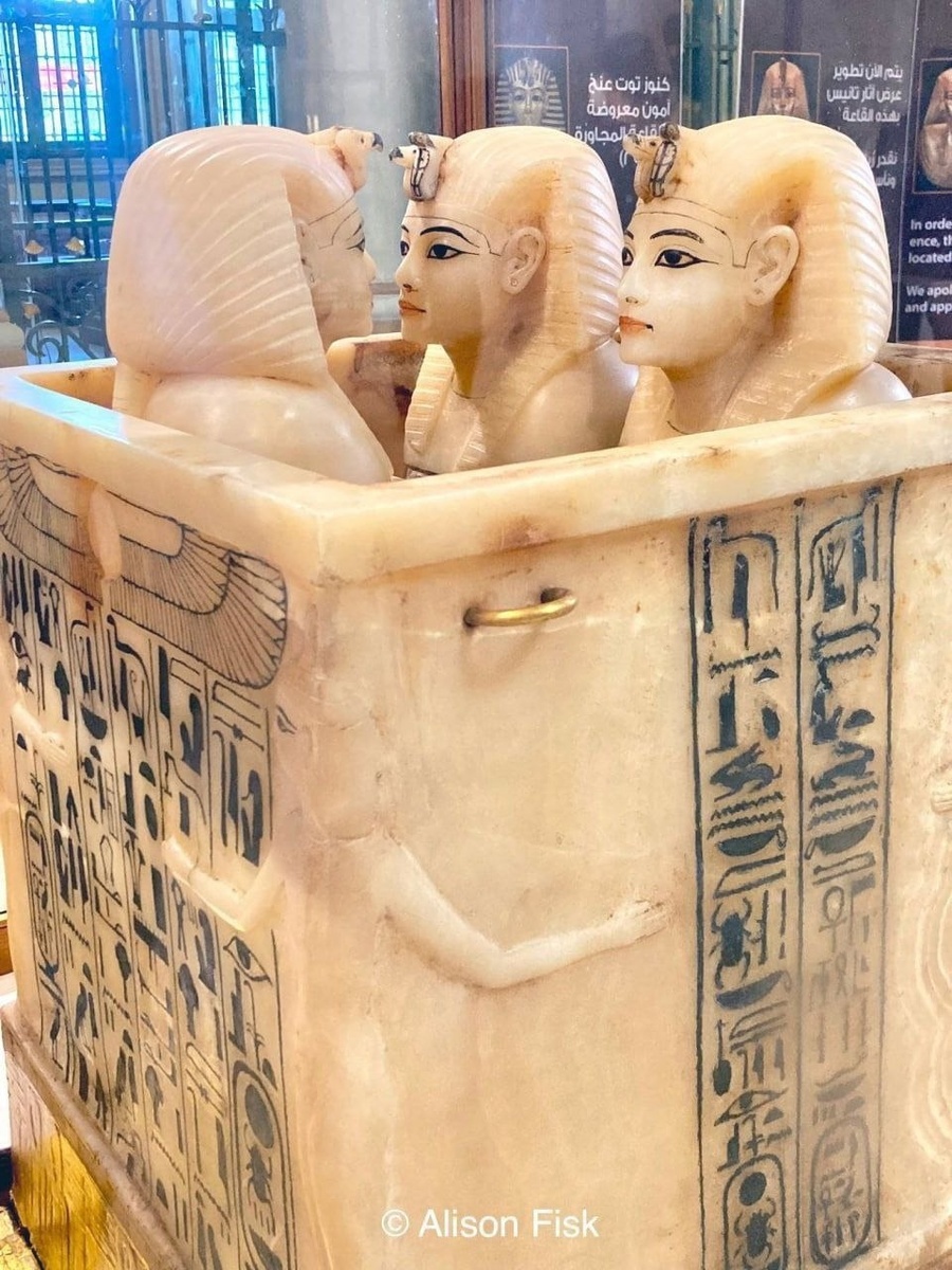 Алебастровая канопа фараона Тутанхамона. 1336-1327 гг. до нашей эры. Канопа — это ритуальный сосуд, в который помещали органы, извлеченные из тела при мумификации. Обычно канопа выглядела, как кувшин, но канопа Тутанхамона не может выглядеть скромно.: четыре отсека с крышками в виде головы царя, в каждом отсеке находится миниатюрный золотой саркофаг с органами царя. Хранится в Египетском музее в Каире. Терра инкогнита | Неизвестная земля