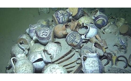 Тигран МИРЗОЯН Военные ВМС Франции в марте 2025 года во время обычной операции по обследованию морского дна случайно наткнулись на затонувшее судно у побережья коммуны Раматюэль. Это обернулось крупнейшим подводным археологическим открытием последних лет: корабль, получивший условное название Camarat 4, является самым глубоко затонувшим в территориальных водах Франции, находясь на глубине более 2,5 километра. Об этом сообщает сайт archaeologymag.com. СУДНО ДЛИНОЙ ОКОЛО 30 МЕТРОВ И ШИРИНОЙ СЕМЬ МЕТРОВ ОБНАРУЖИЛИ С ПОМОЩЬЮ ПОДВОДНЫХ ДРОНОВ, а еще один дистанционно управляемый аппарат подтвердил находку. Корабль, предположительно, плыл с лигурийского побережья (нынешняя северная Италия) и перевозил разнообразный керамический груз. Археологи нашли на борту около 200 фаянсовых кувшинов с геометрическими и цветочными узорами, а также примерно сотню желтых тарелок. Многие из сосудов украшены христограммой IHS - первыми тремя буквами имени Иисуса на греческом и армянском языках. Керамические