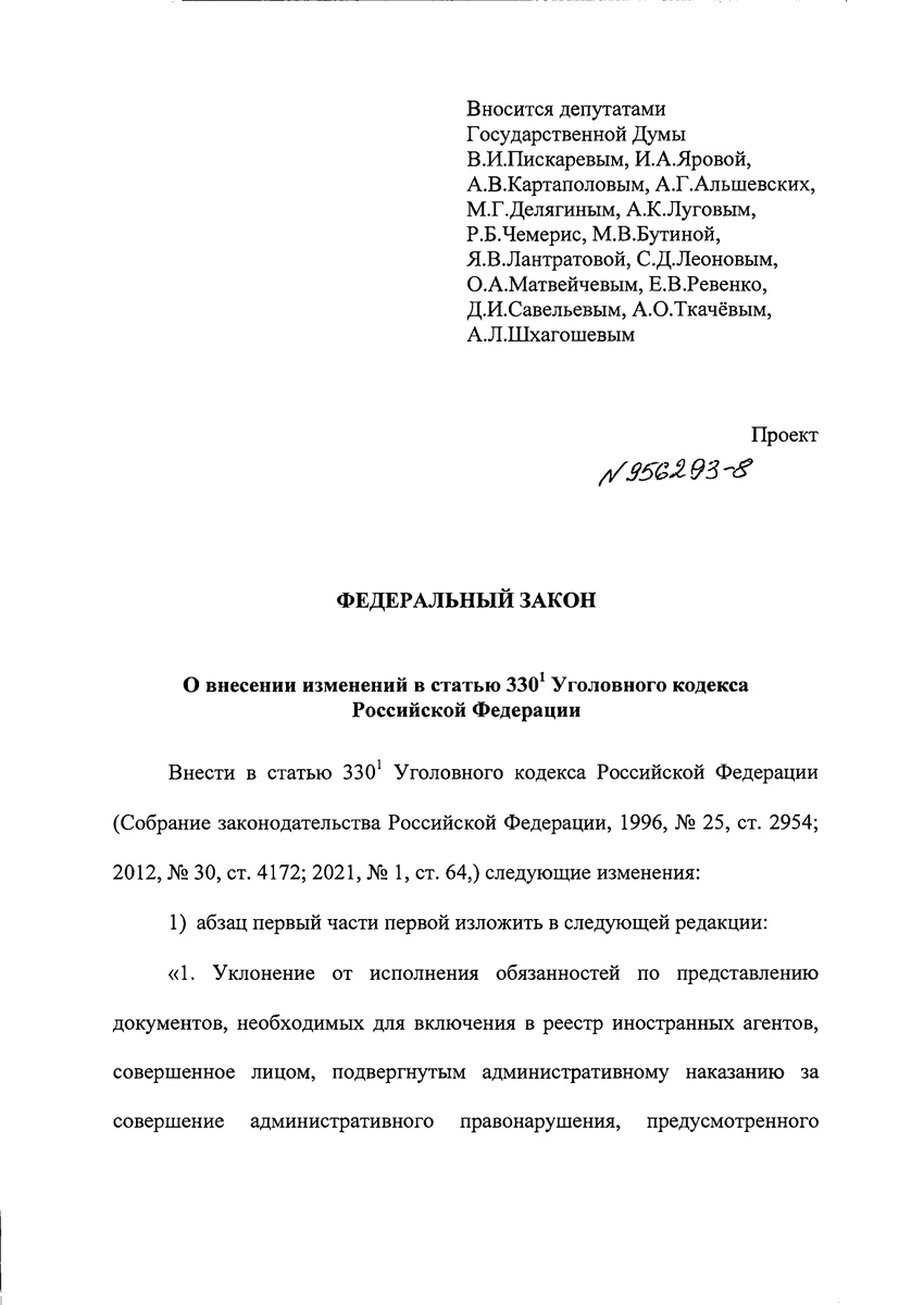 Иноагенты должны соблюдать ряд ограничений, в том числе маркировать посты в соцсетях. Правила несложные, но практически половина деятелей игнорирует требования закона. Что ж, сами напросились. В настоящее время иноагентам грозит уголовка только после двух административных правонарушений за год (по части 1 статьи 19.34. КоАП РФ). Предложили поправки, чтобы уголовная ответственность наступала уже после однократной административки.