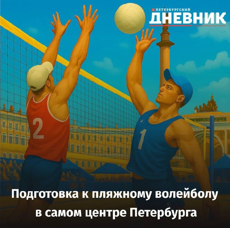 🏐 На Дворцовой площади в Петербурге пройдет Финал Кубка России по пляжному волейболу Да-да, именно Дворцовая площадь с 17 по 20 июля превратится в пляжную арену — настоящий песок и захватывающие матчи с участием лучших спортсменов страны! Организаторы уже получили разрешение от ГАТИ, а после финала до 28 июля все конструкции и песок уберут, чтобы центр Петербурга вернулся к своему привычному виду. Контроль за восстановлением благоустройства под строгим надзором инспекторов. Фото: сгенерировано в нейросети Петербургский дневник