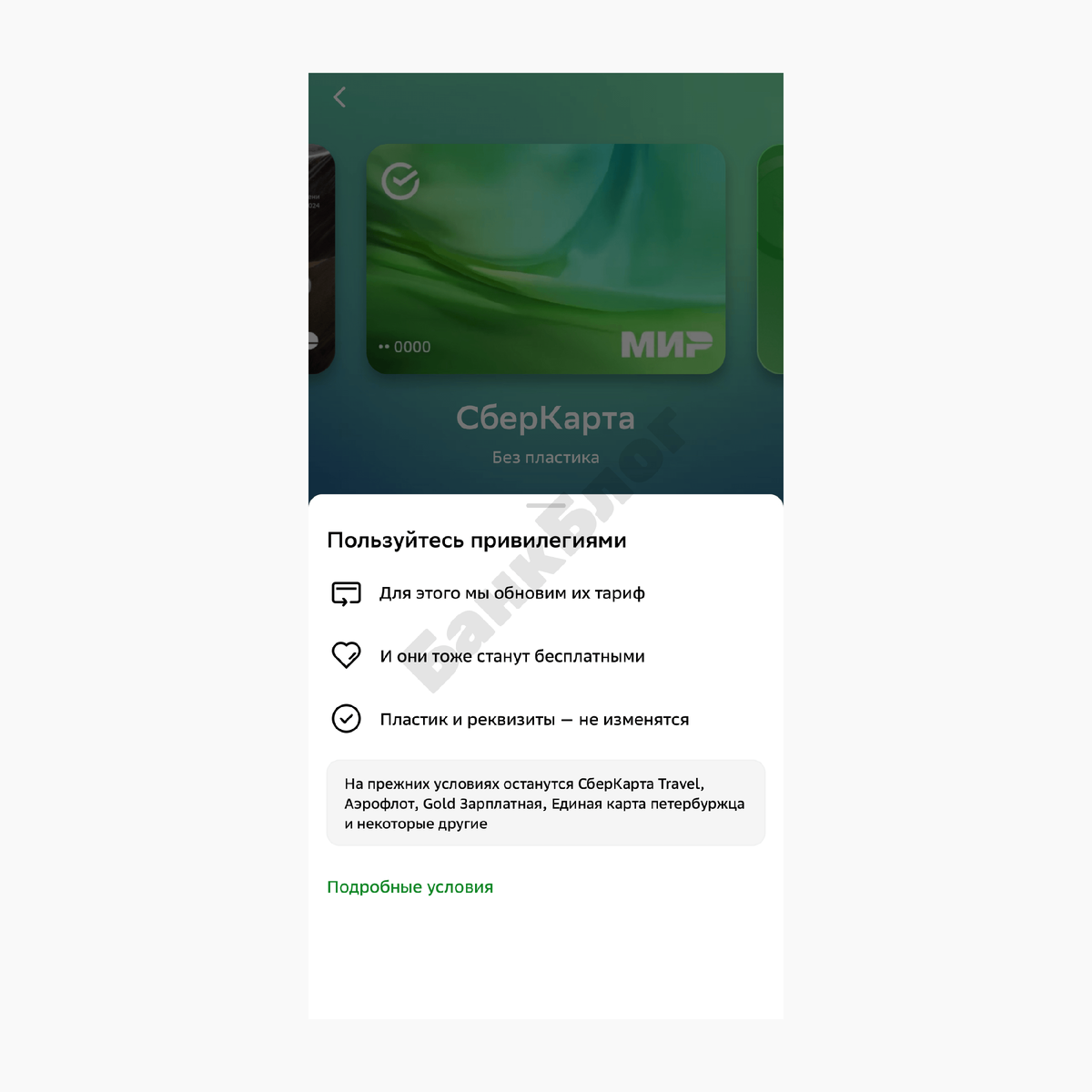 Новые условия обслуживания распространятся на все дебетовые карты, кроме тех карт, для которых обновление тарифа недоступно.