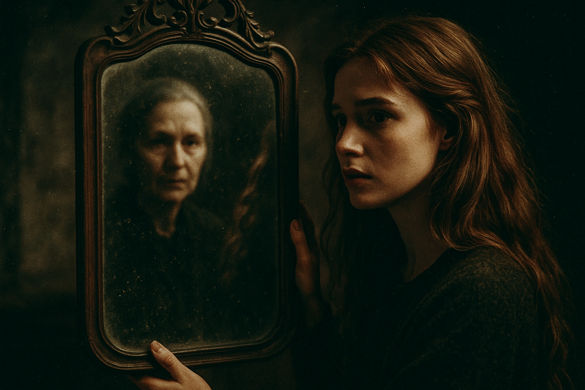 Ночью Вера снова подошла к зеркалу. На этот раз видение пришло сразу. Она видела себя — но постаревшую, с седыми волосами, в старой кофте. Сидела в маленькой комнате, больше похожей на каморку. На столе лежала стопка неоплаченных счетов.