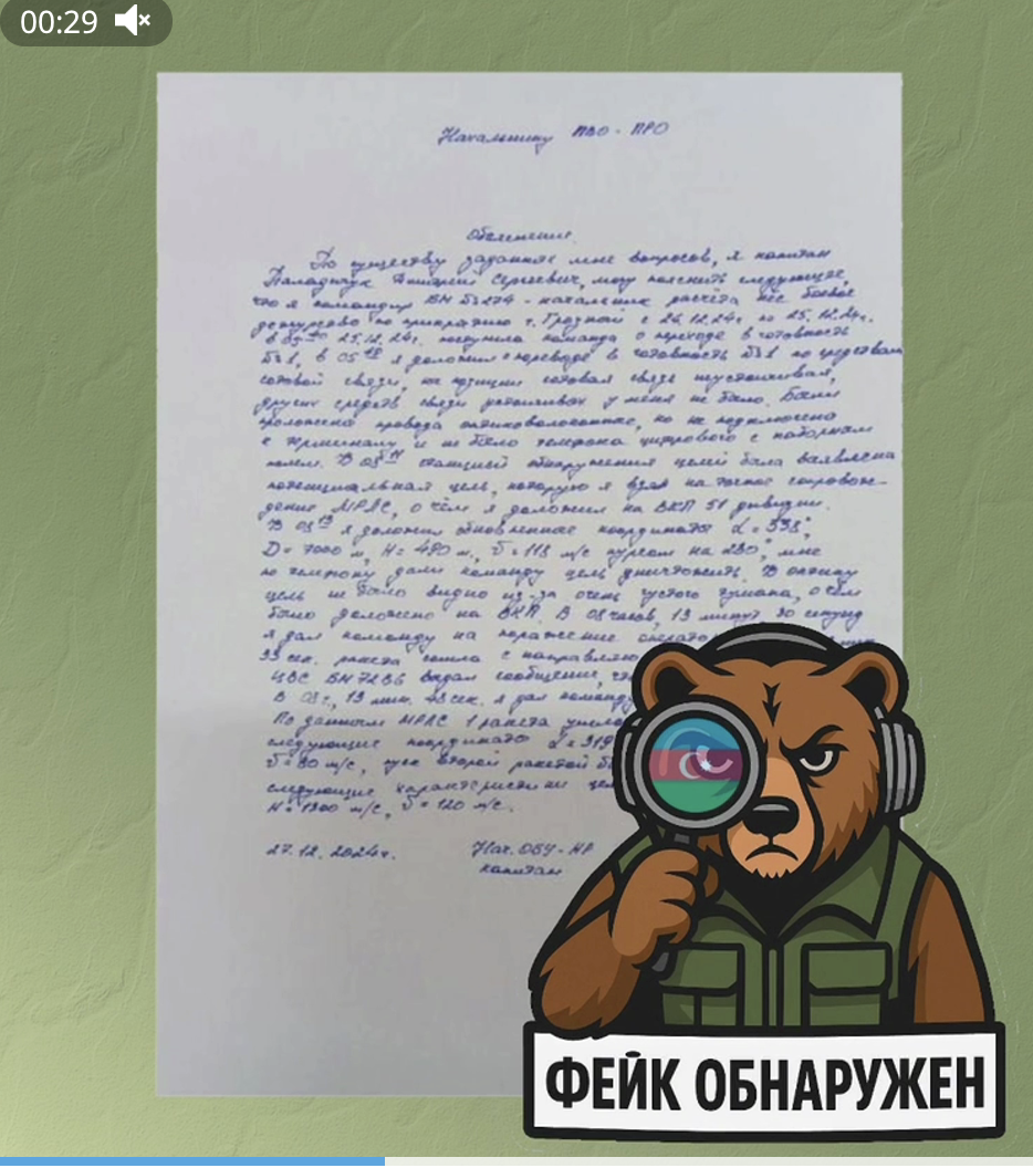 Вот перед нами «объяснительная», которую растиражировали азербайджанские ресурсы. Чтобы усилить эффект, к письму приложили аудиозапись переговоров, где якобы звучит приказ на уничтожение воздушной цели. Первое впечатление – текст писали люди, которые никогда в армии не служили и вообще плохо понимают, как устроена военная машина...