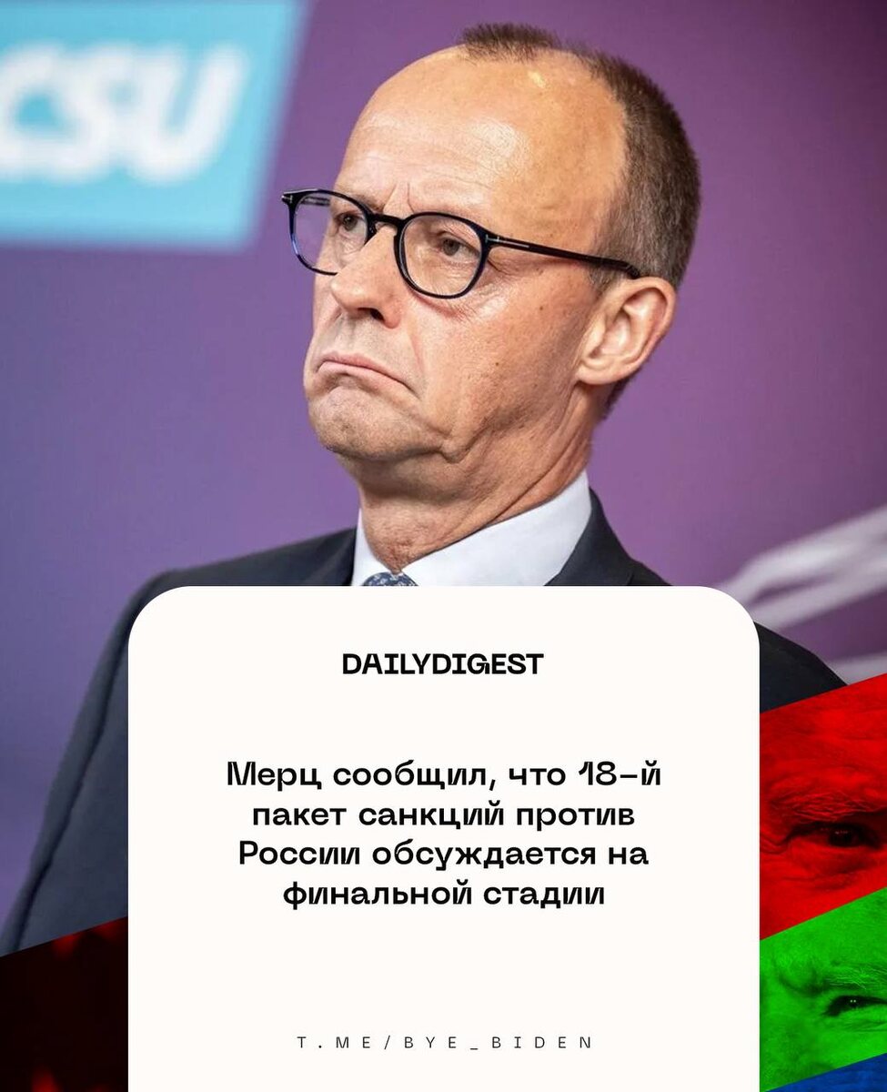 🔹Мерц сообщил, что 18-й пакет санкций против России обсуждается на финальной стадии.